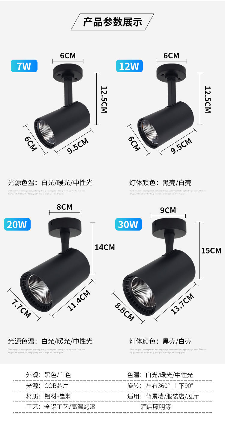 Led 오픈 스포트라이트 상업 의류 매장 단일 조명 상점 배경 벽 슈퍼 밝은 홈 천장 cob 작은 트랙 조명스토어 가기