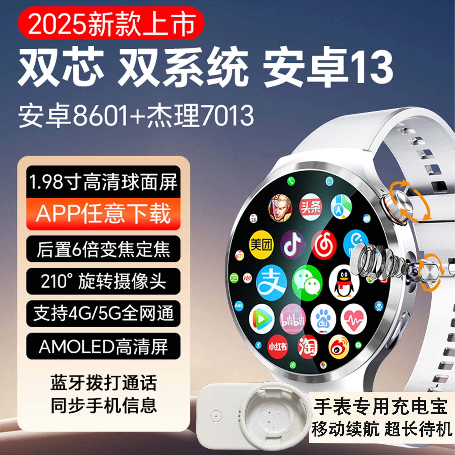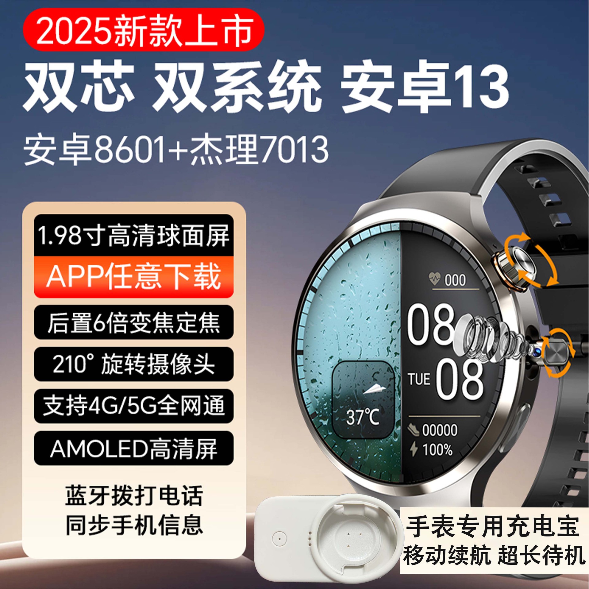 智启慧双系统watch智能电话手表 S13插卡下载APP支付旋转摄像头NFC门禁