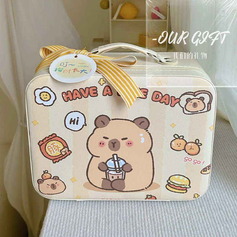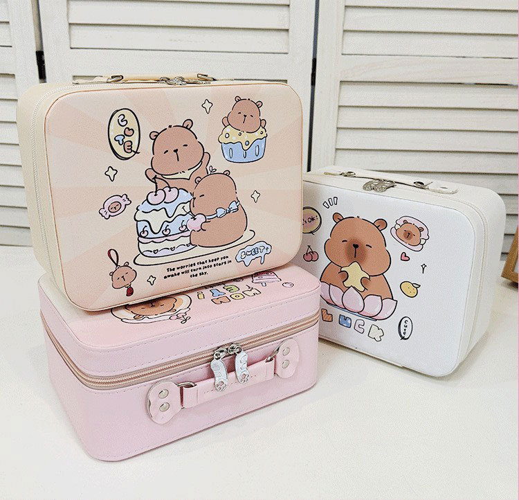 학교 선물용 카피바라 화장품 가방, 어린이 10번째 생일 선물, 귀여운 곰 여행 가방
