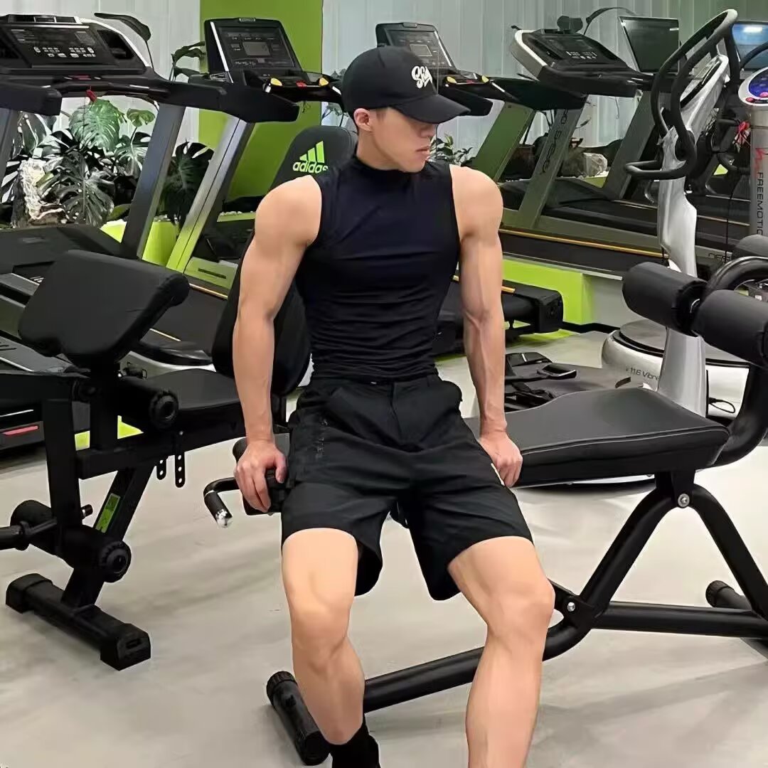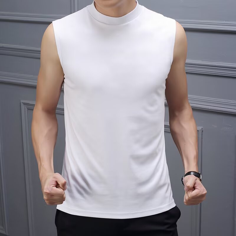솔리드 컬러 하프 터틀넥 조끼 남성용 타이트 스포츠 조끼 남성용 미드 칼라 피트니스 바닥 셔츠 스탠드 칼라 와이드 숄더 민소매 티셔츠스토어 가기