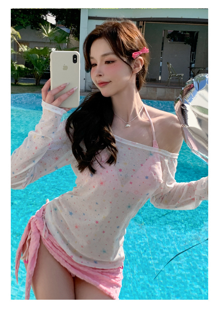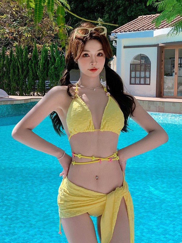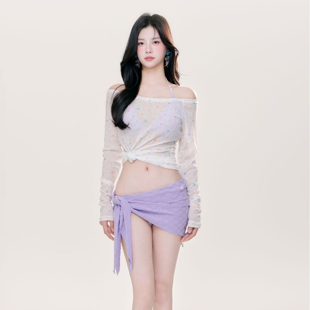 새로운 비키니 수영복 여성 4 피스 세트 뜨거운 소녀 순수한 욕망 천장 휴가 작은 가슴 슬리밍 수영복 크로스 보더스토어 가기