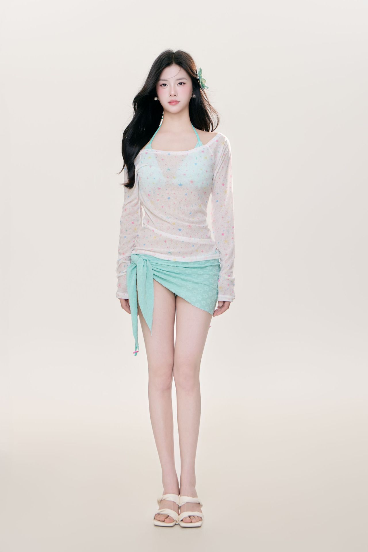 새로운 비키니 수영복 여성 4 피스 세트 뜨거운 소녀 순수한 욕망 천장 휴가 작은 가슴 슬리밍 수영복 크로스 보더