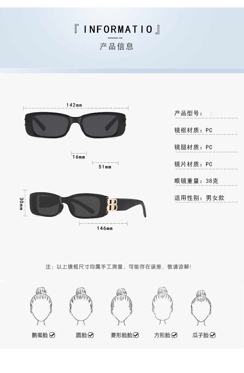 국경 간 새로운 인터넷 인기있는 같은 스타일 상자 선글라스 자외선 방지 선글라스 여성 고급 스트리트 샷 선글라스 남성 트렌디