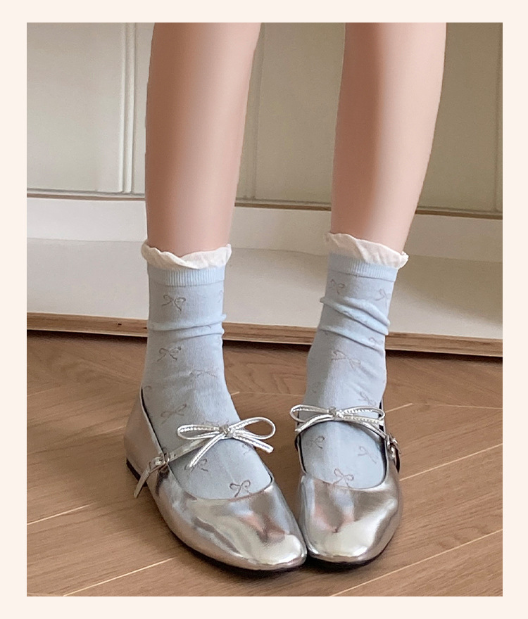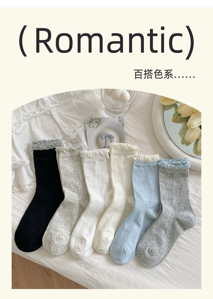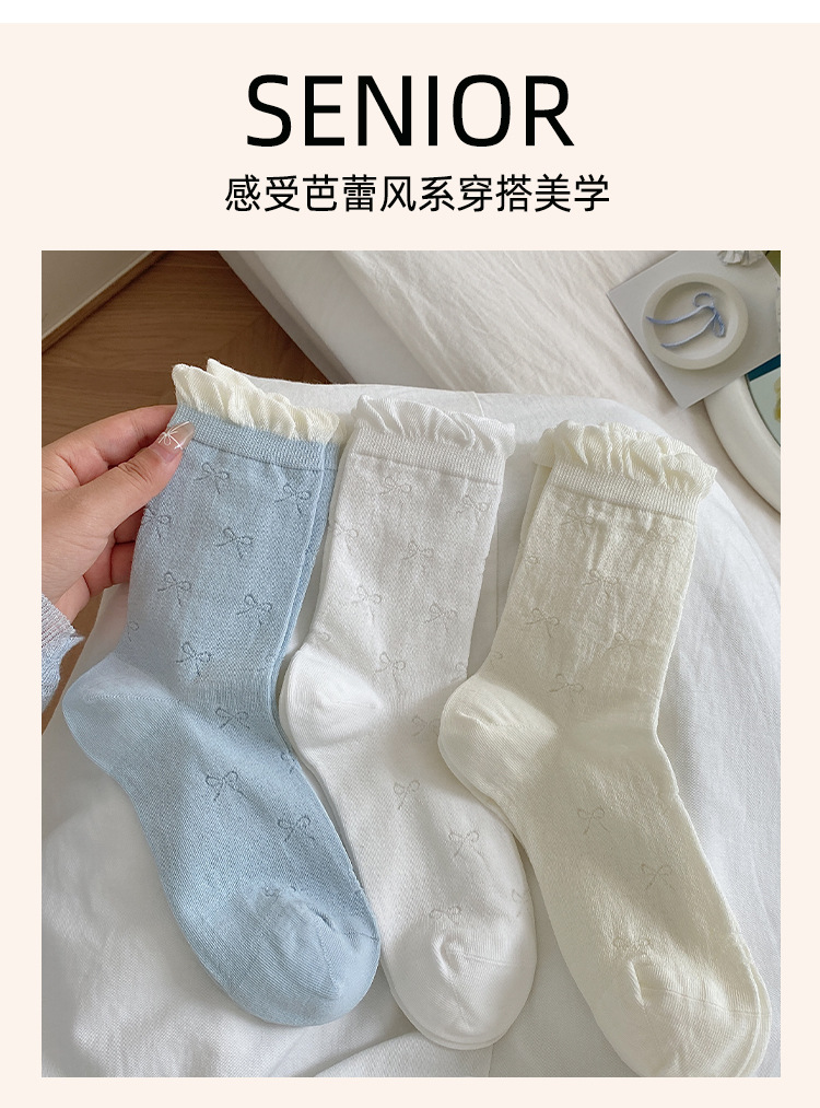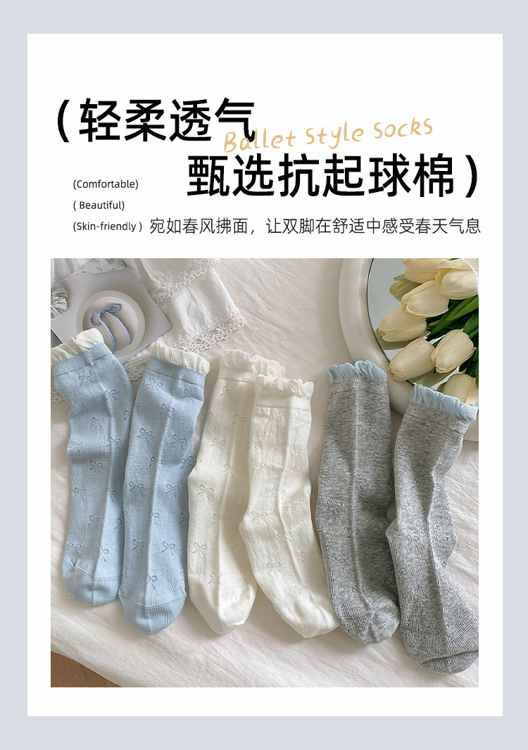 여름 여성용 발레 스타일 양말 얇은 중간 튜브 여성용 컬러 블록 레이스 보우 본리스 메쉬 안티 필링면 양말스토어 가기