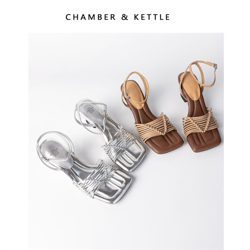 양가죽 버전 ~ 프렌치 니트 할로우 홀리데이 스타일 샌들 여성용 로우 힐 편안한 원힐 기질 하이힐 스퀘어 헤드