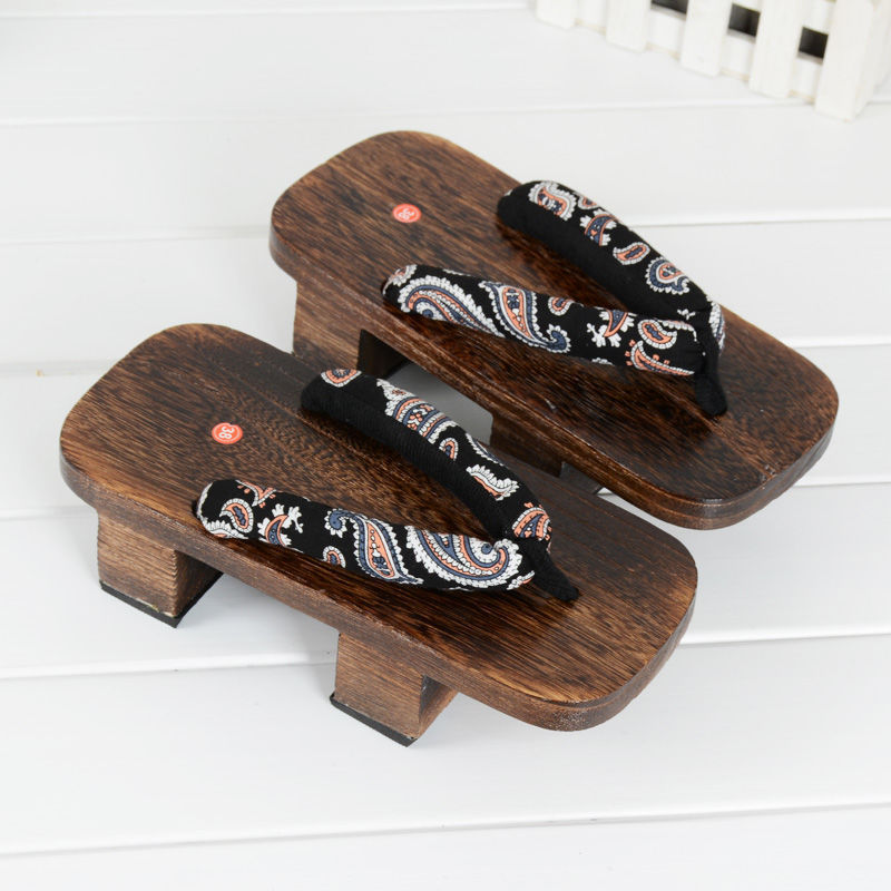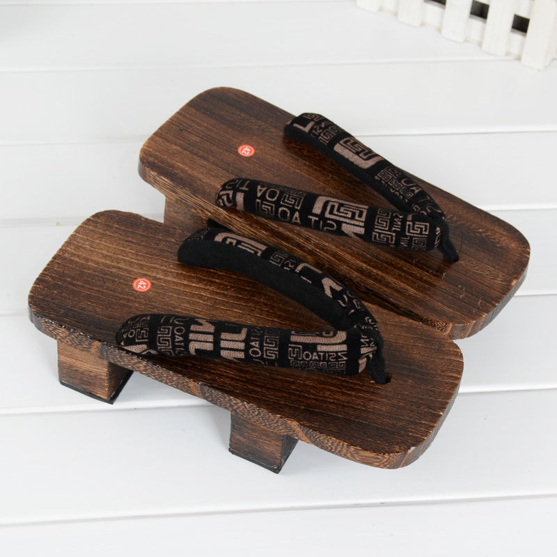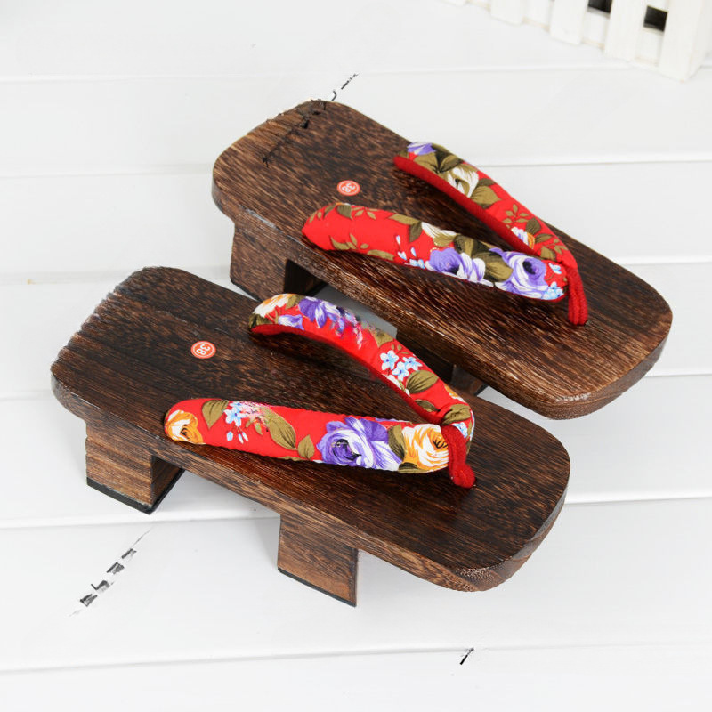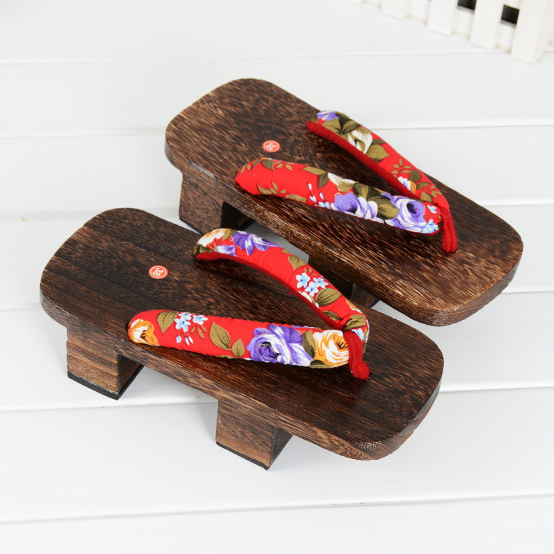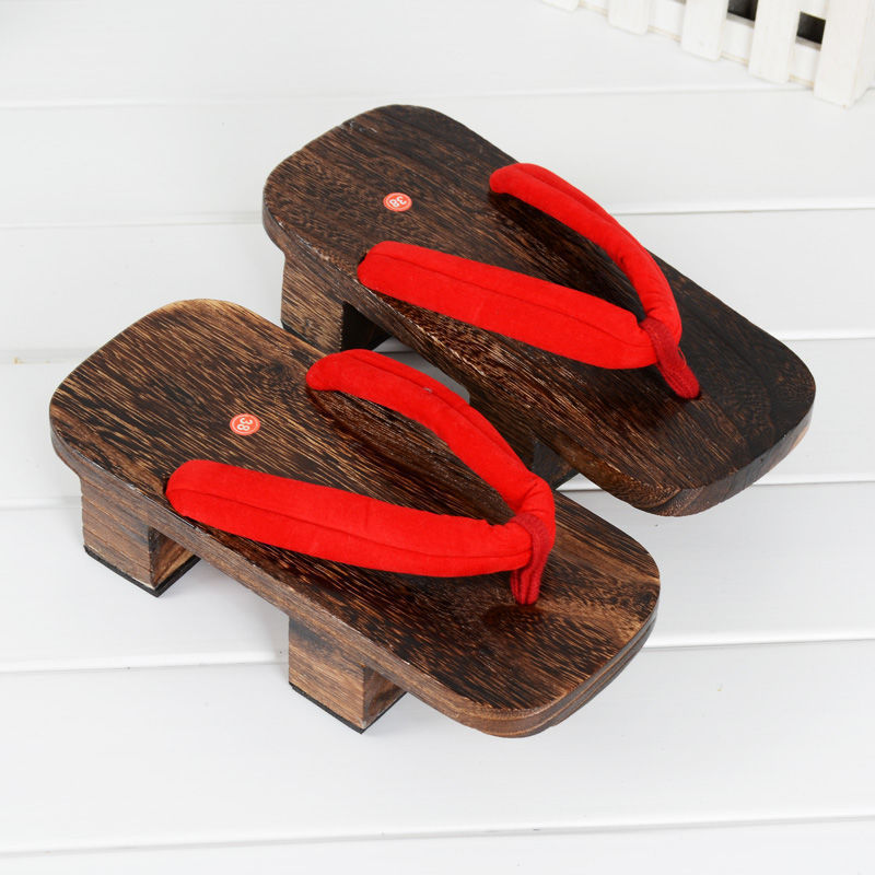 Clog Flip Flops 여성 남성과 여성의 일본 목욕탕 애니메이션 2 이빨 나무 신발 여름 투이빨 블랙 우드 퓨어 레드