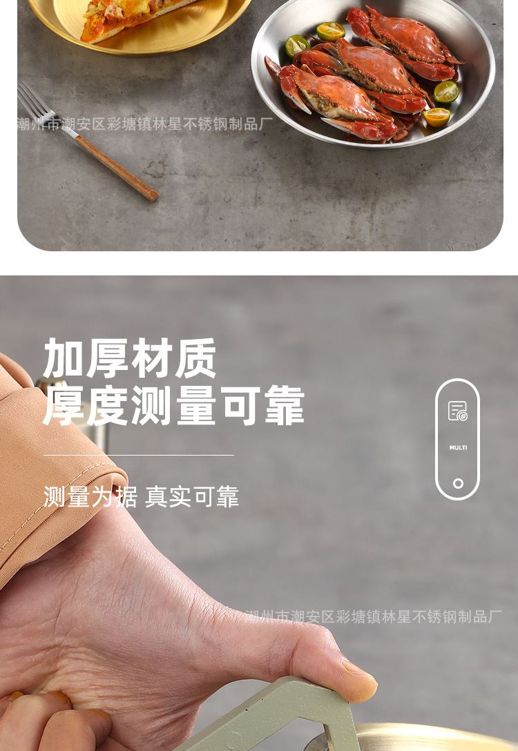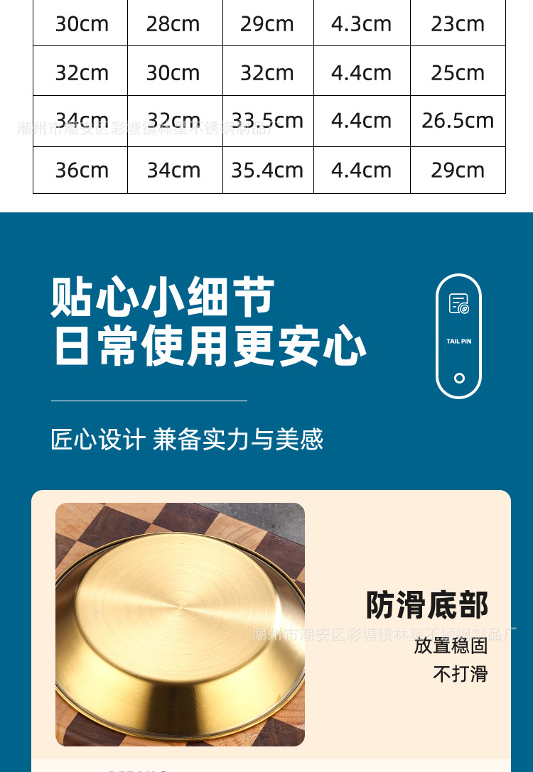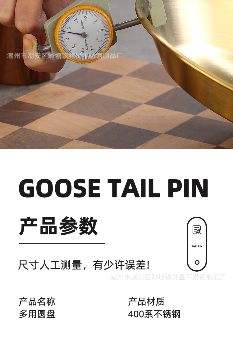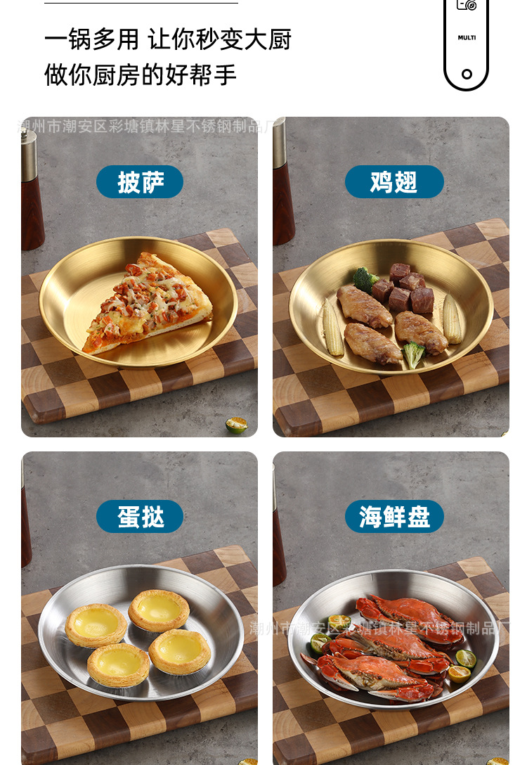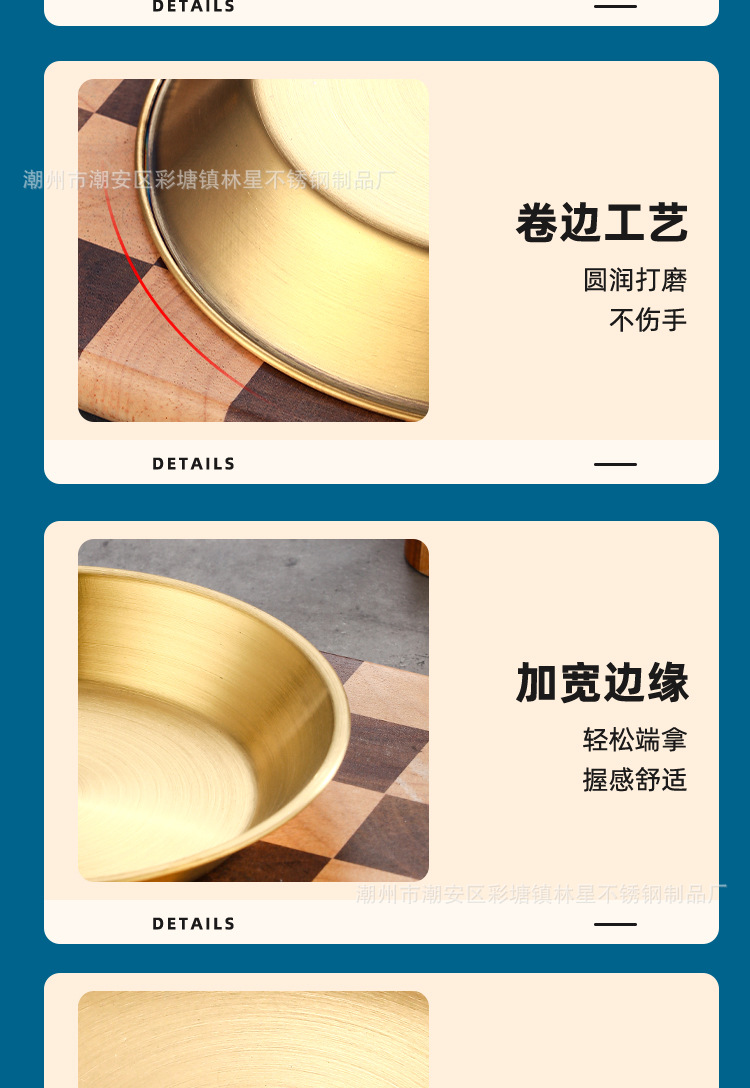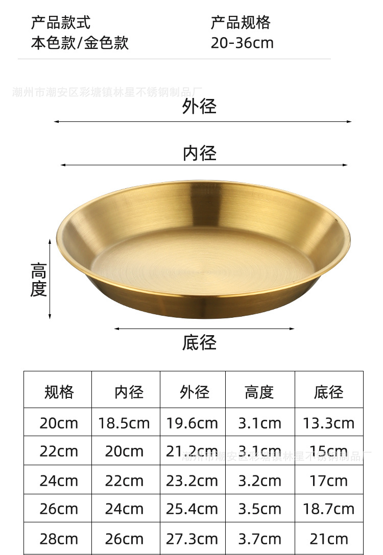 한국식 스테인레스 스틸 디스크 간단한 해산물 플레이트 골든 라운드 플랫 피자 플레이트 접시 바베큐 플레이트 트레이