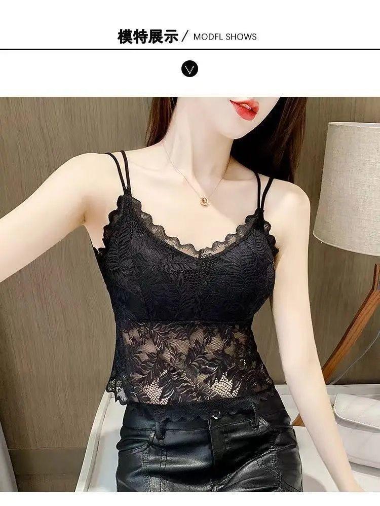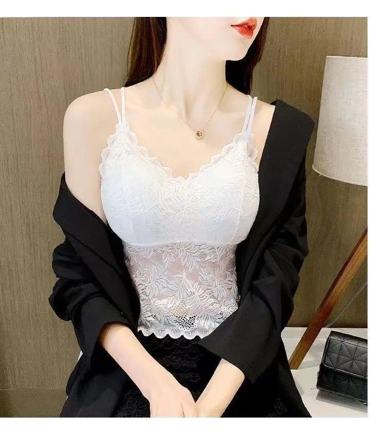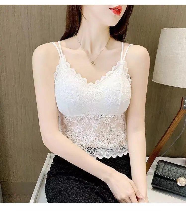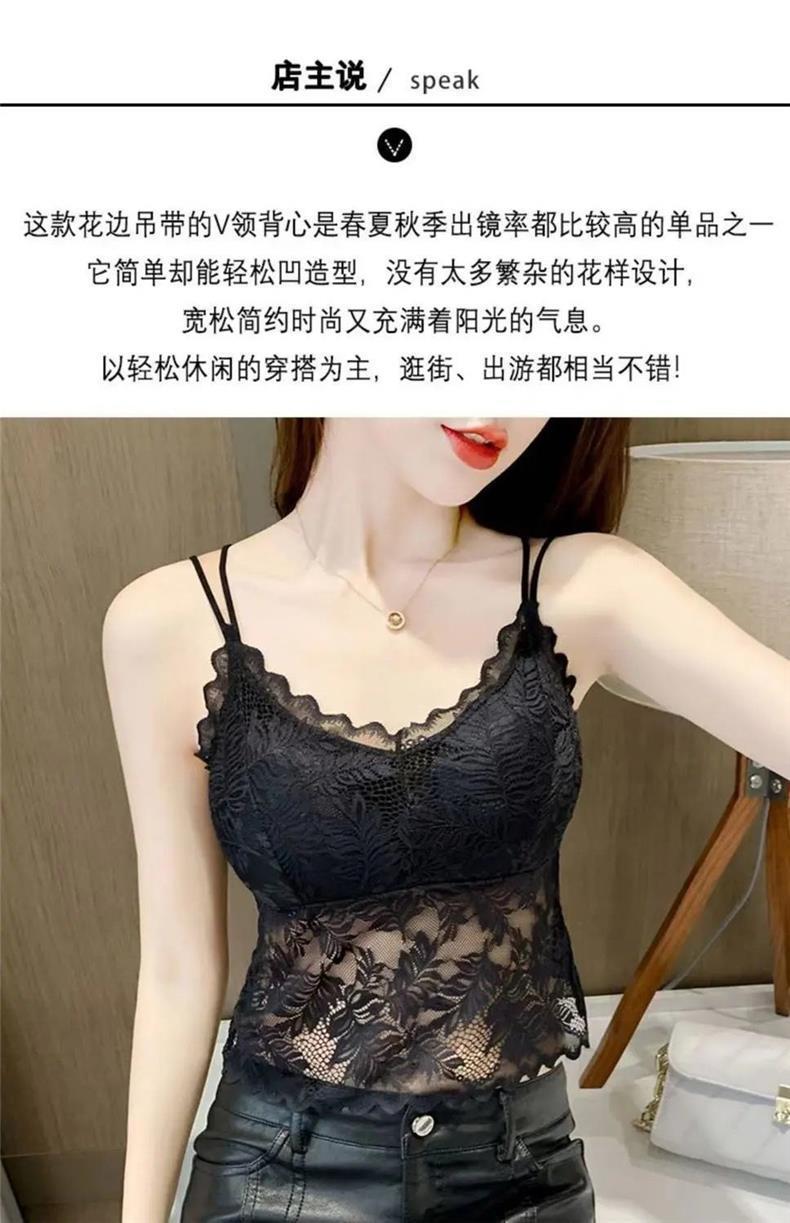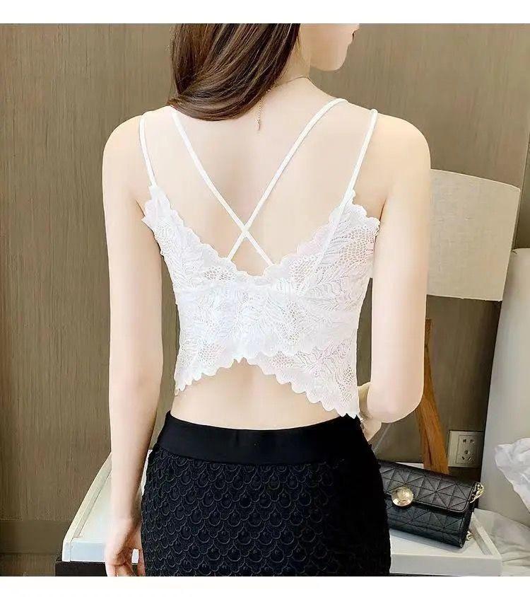 아름다운 등 브라, 일체형 캐주얼 레이스 서스펜더, 편안하고 피부 친화적이며 통기성이 좋은 속옷, 탈부착 가능한 가슴 패드 조끼