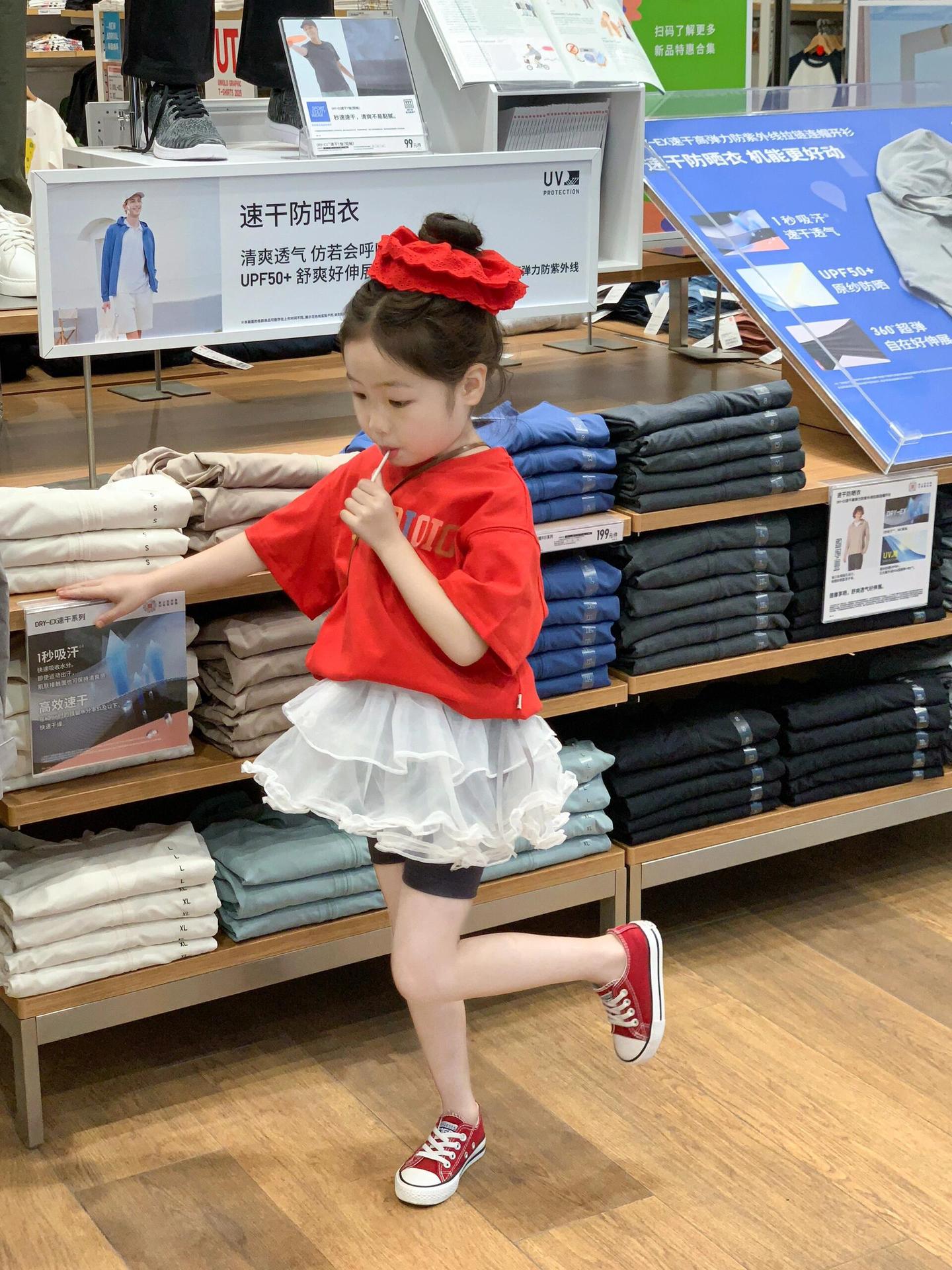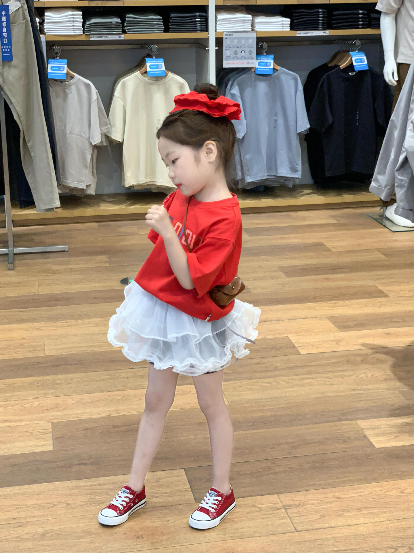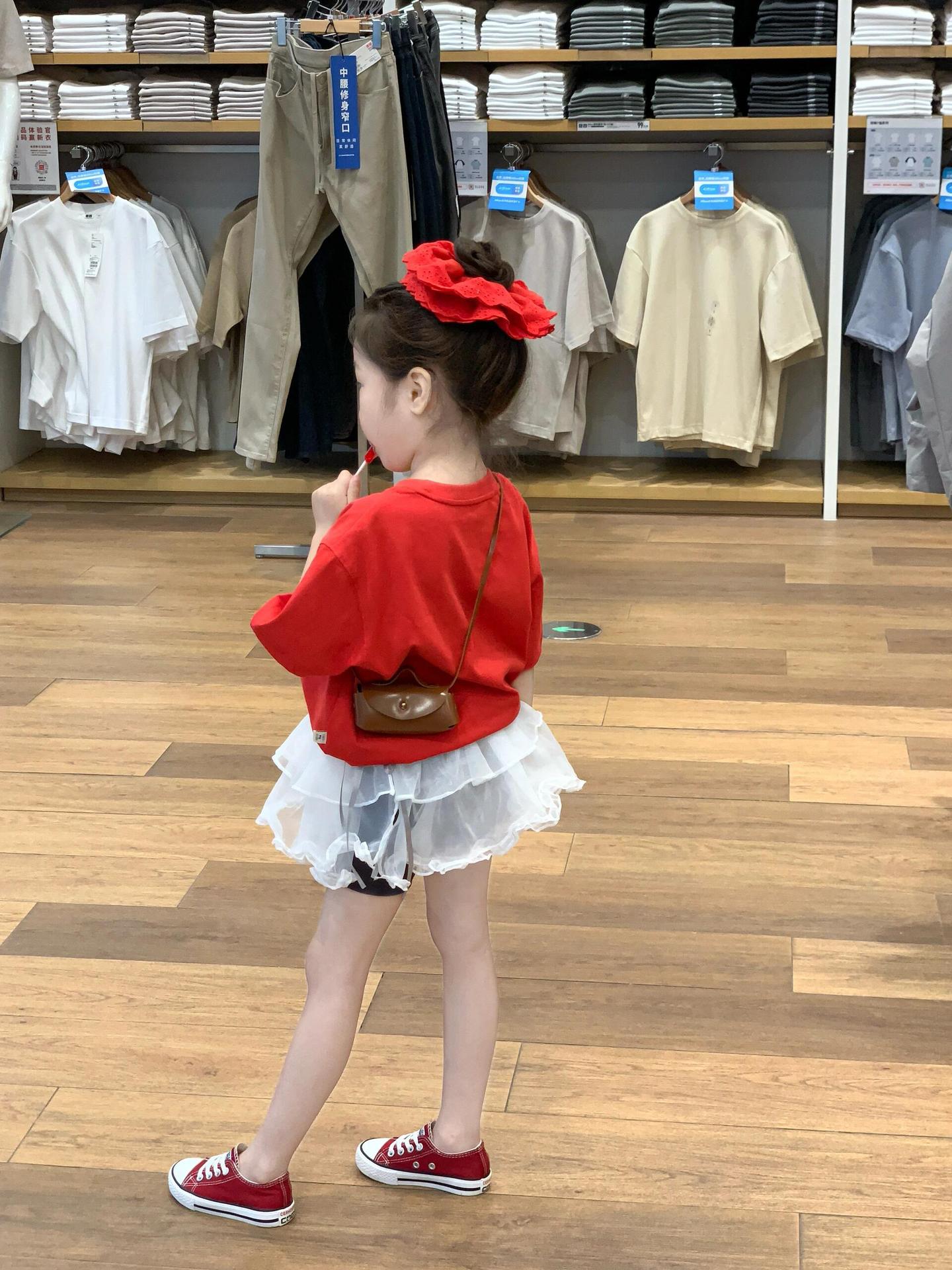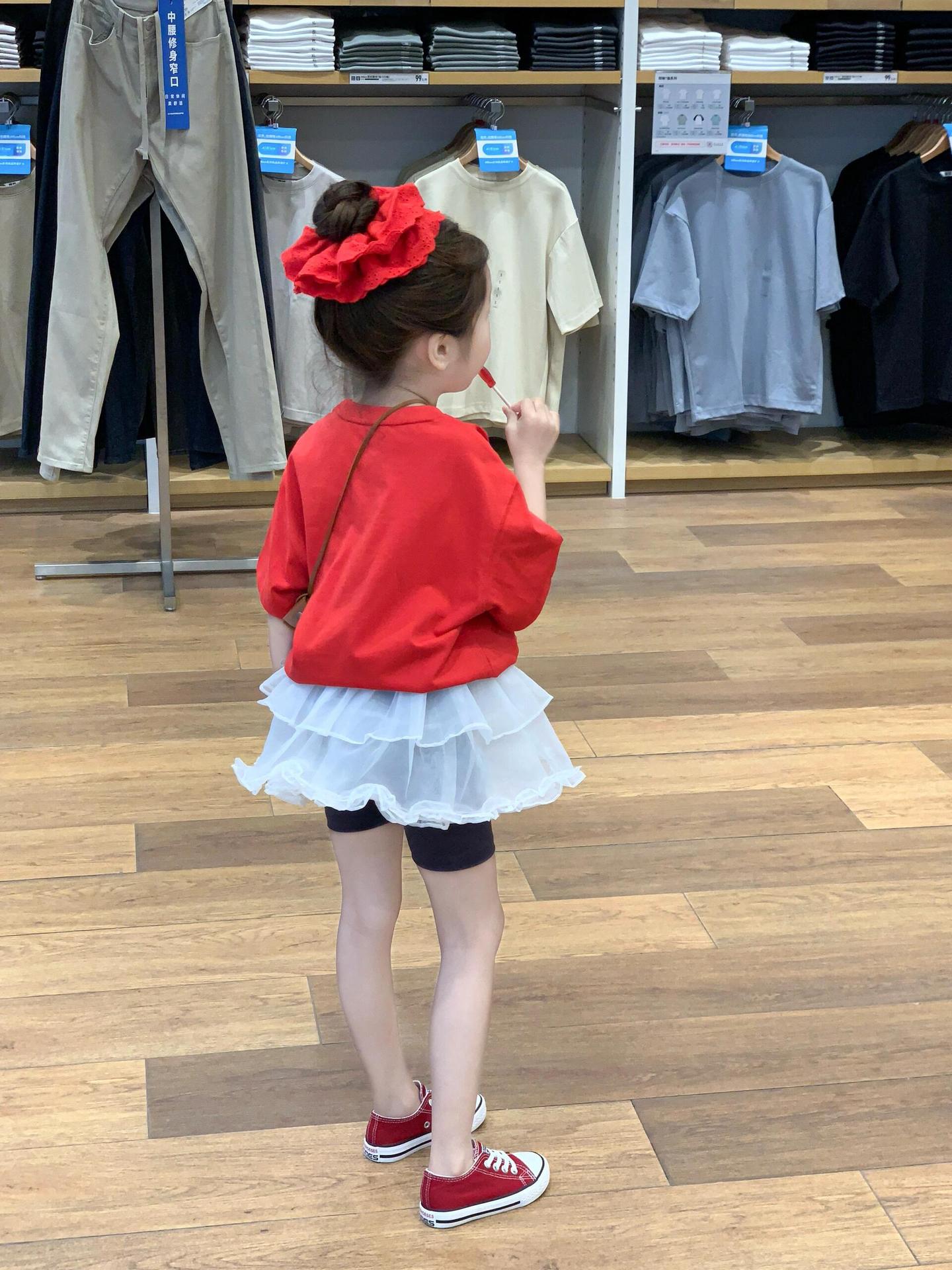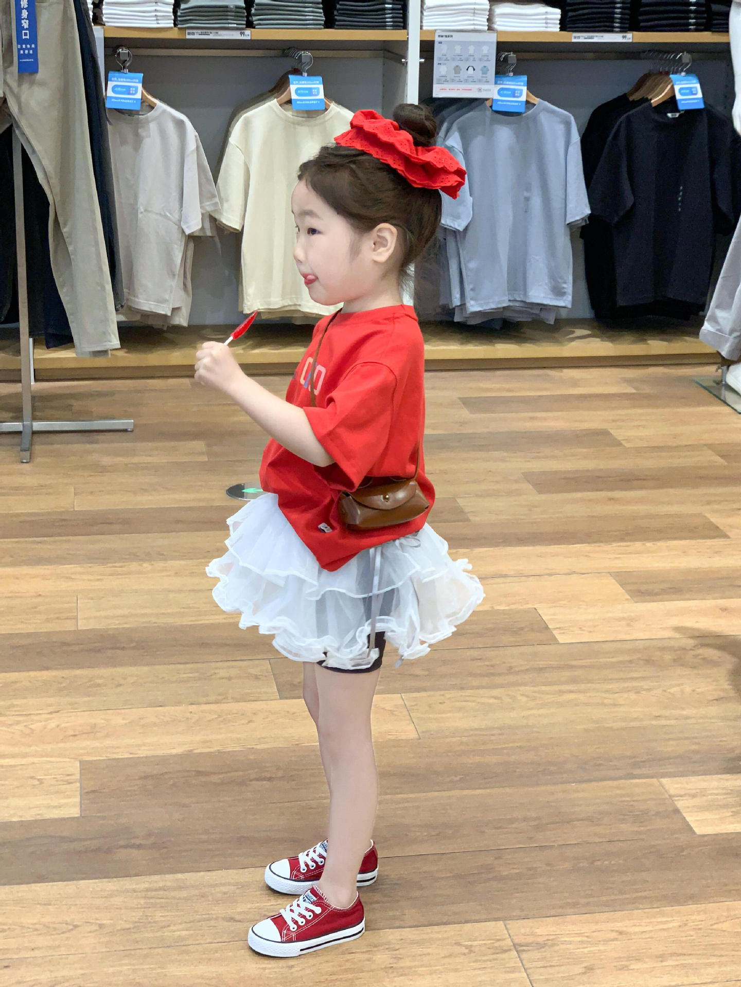 소녀의 편지 인쇄 반팔 티셔츠 소녀의 느슨한 탑 원사 방귀 커튼 5 점 상어 반바지 3 종 세트스토어 가기