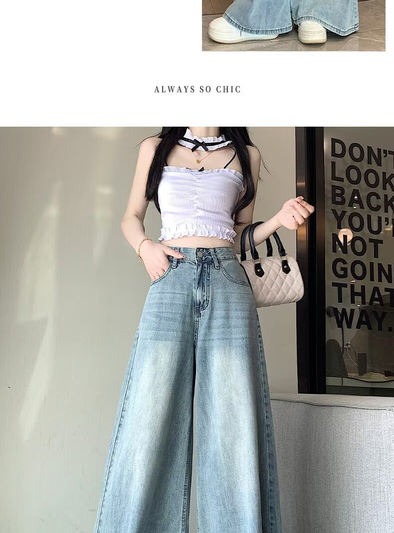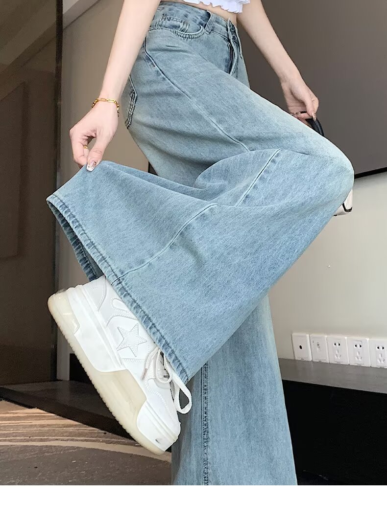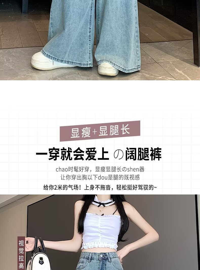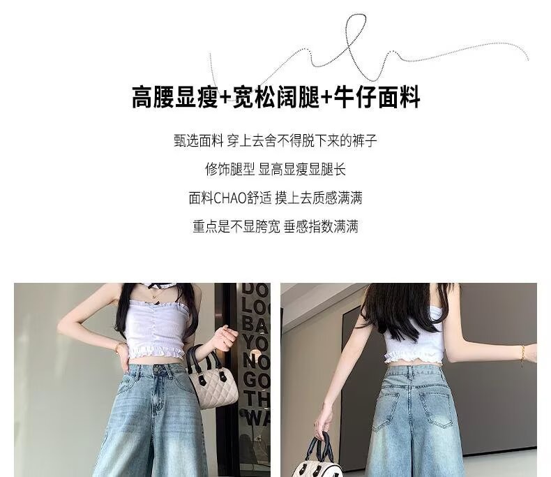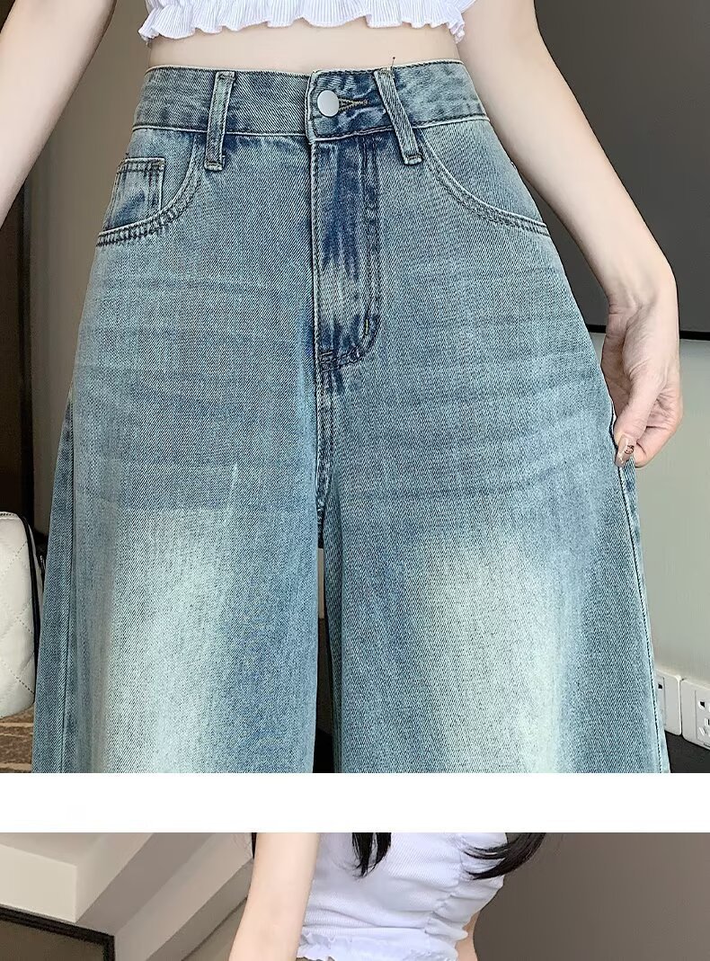 여름 여성용 광저우 대형 와이드 레그 청바지 얇은 하이 웨이스트 슬리밍 드레이프 루즈 스트레이트 바닥 길이 바지