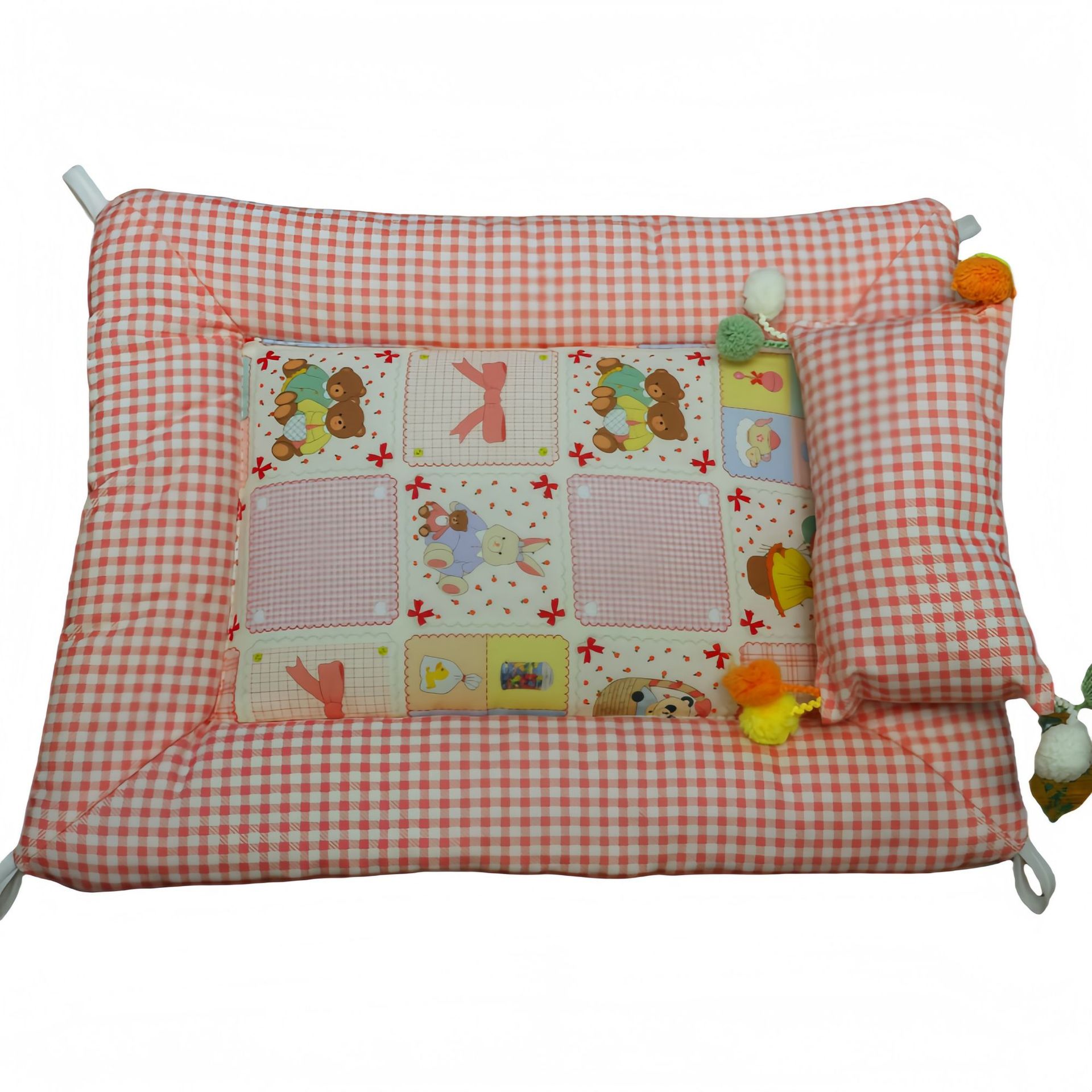 • 로즈 체크 무늬 곰 쿠션 + 베개