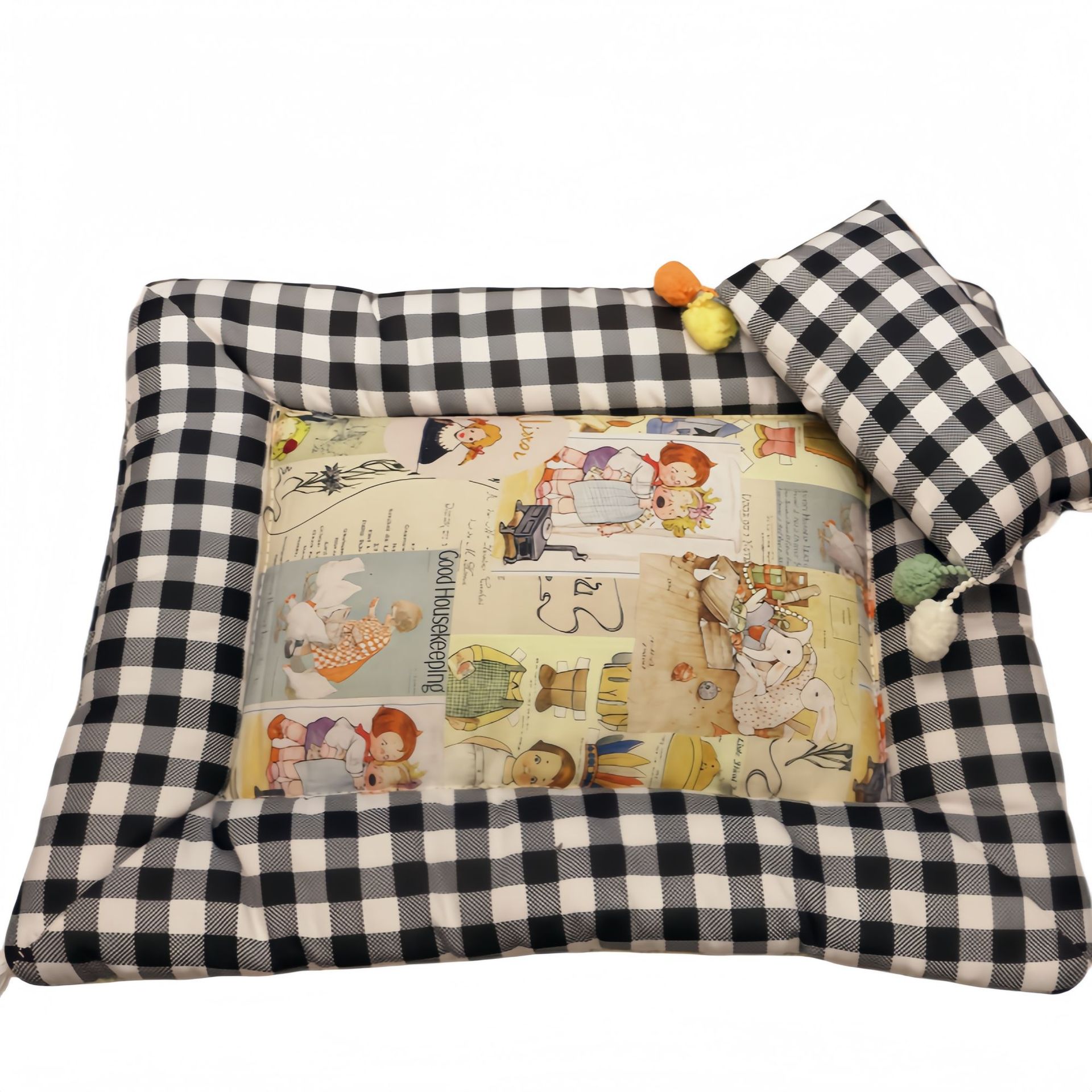• 검은 격자 무늬 소녀 쿠션 + 베개
