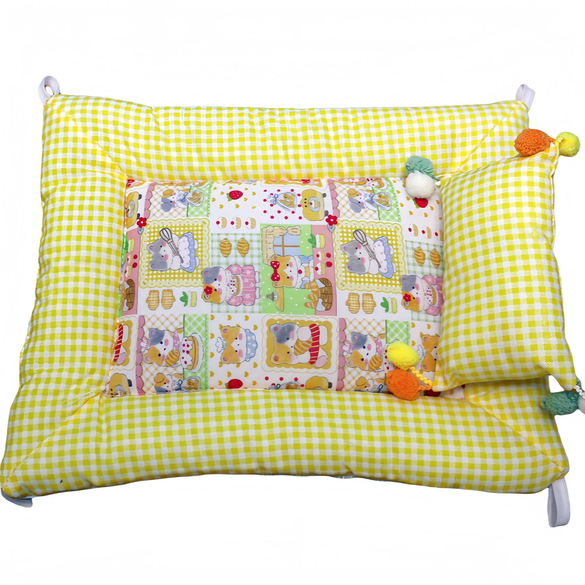 • 노란색 격자 무늬 고양이 쿠션 + 베개