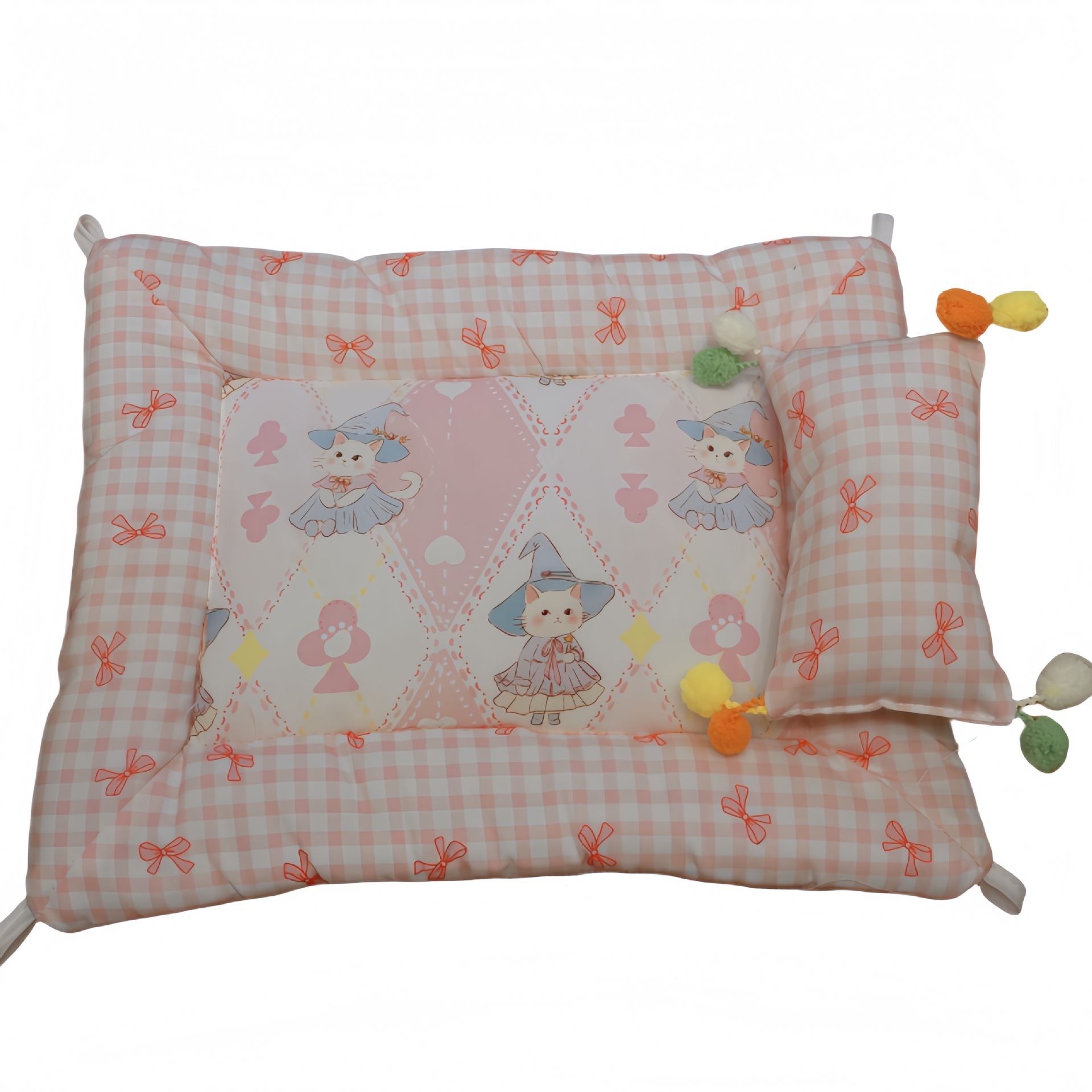 • 핑크 고양이 활 쿠션 + 베개