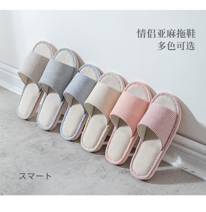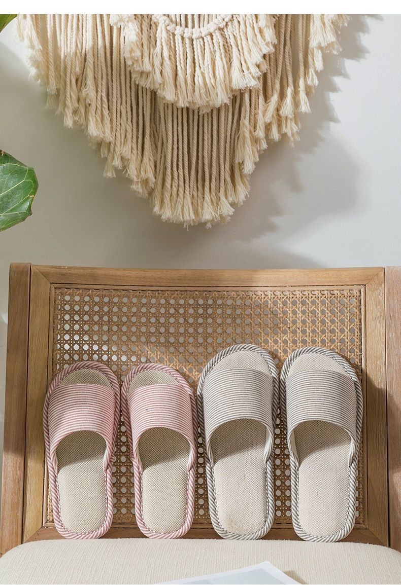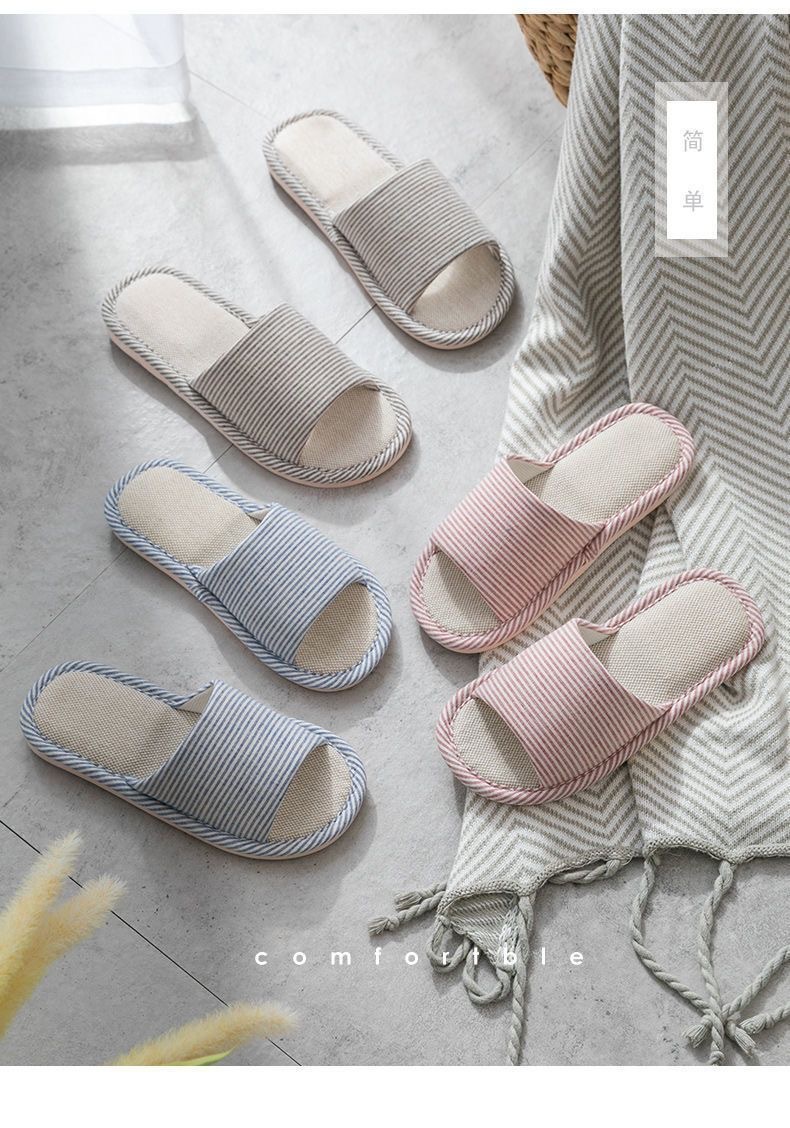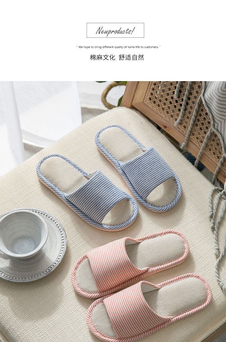 사계절 린넨 핀 스트라이프 슬리퍼 여성용 홈 실내 바닥 미끄럼 방지 남성용 PVC 홈 커플 목가적 제조업체스토어 가기
