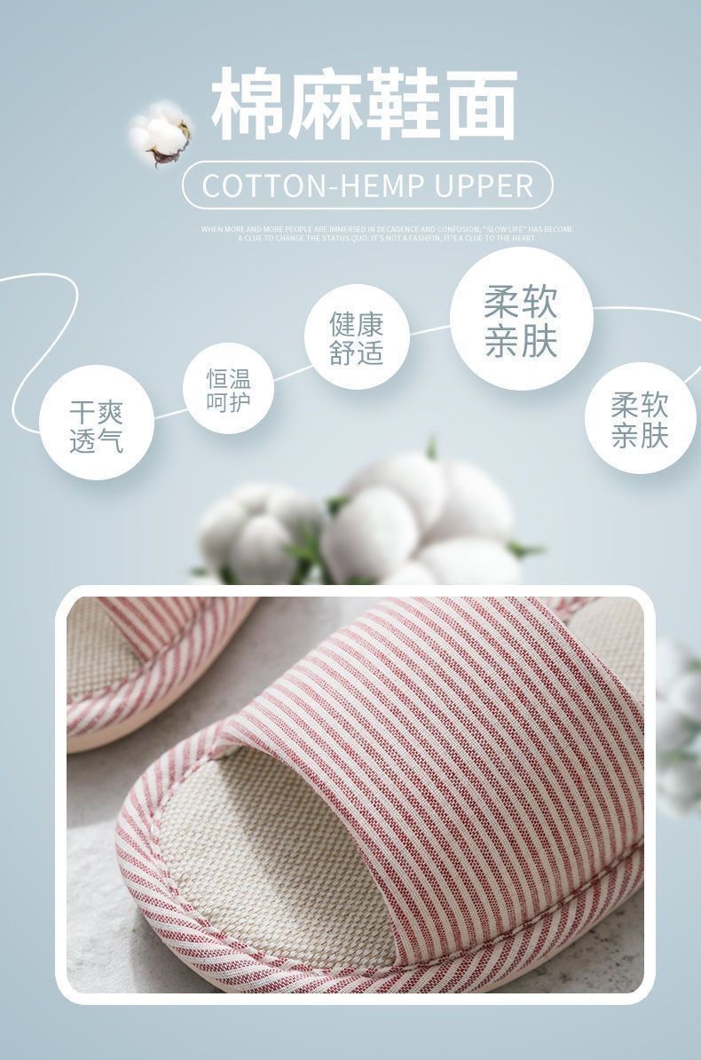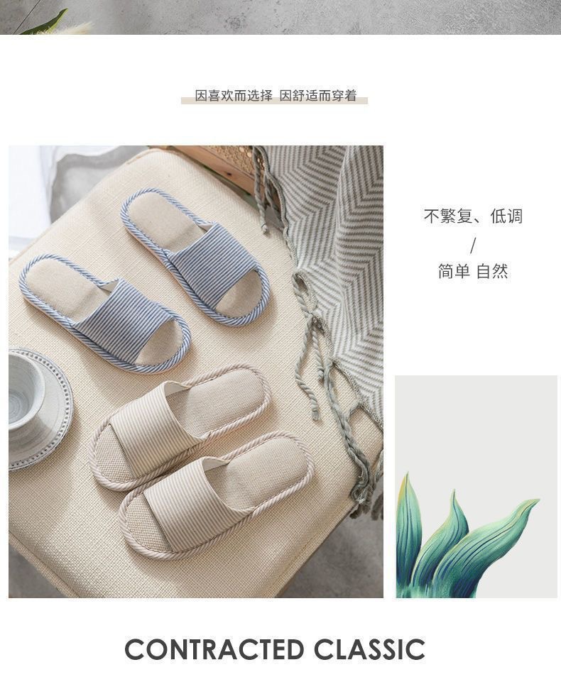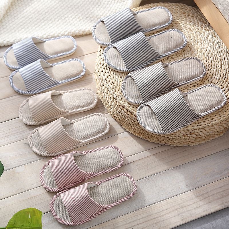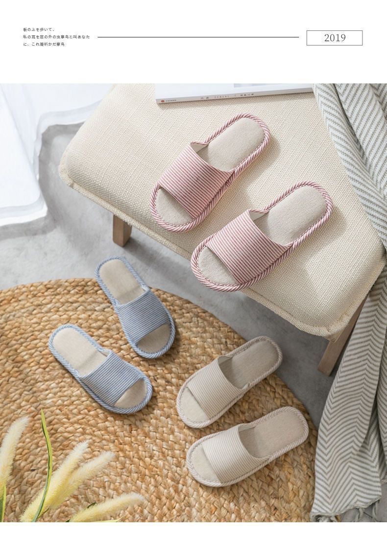 사계절 린넨 핀 스트라이프 슬리퍼 여성용 홈 실내 바닥 미끄럼 방지 남성용 PVC 홈 커플 목가적 제조업체스토어 가기