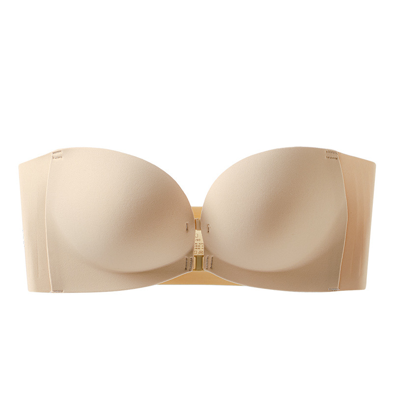 Xingtong 스타일 코튼 스트랩리스 미끄럼 방지 프론트 버튼 여성용 속옷, 보이지 않는 흔적 없음, 작은 가슴 푸시 업, 더 큰 딥 V 뷰티 백 브라스토어 가기