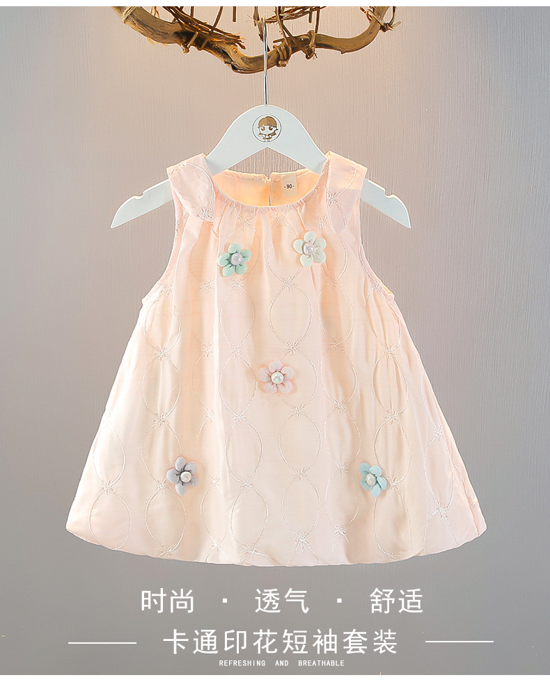 여름 원피스 소녀의 유행 공주 원피스 여름 아기 소녀 얇은 원피스 소녀 민소매 베살 원피스스토어 가기