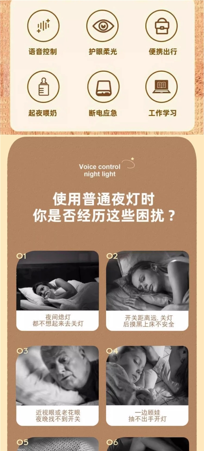 공장 직판 인공지능 음성 제어 야간등 음성 제어 LED 눈 보호등 일체형 스마트 음성 제어