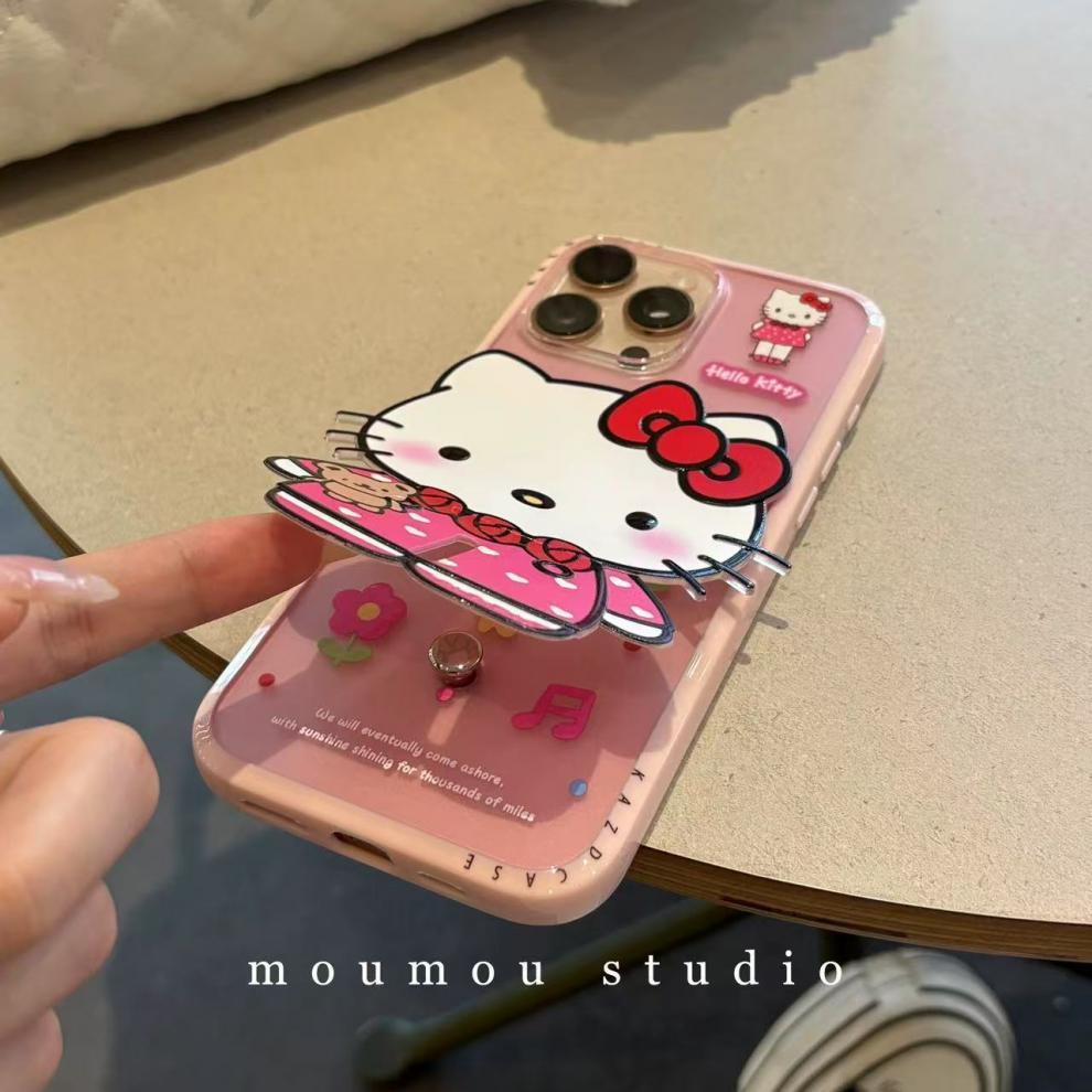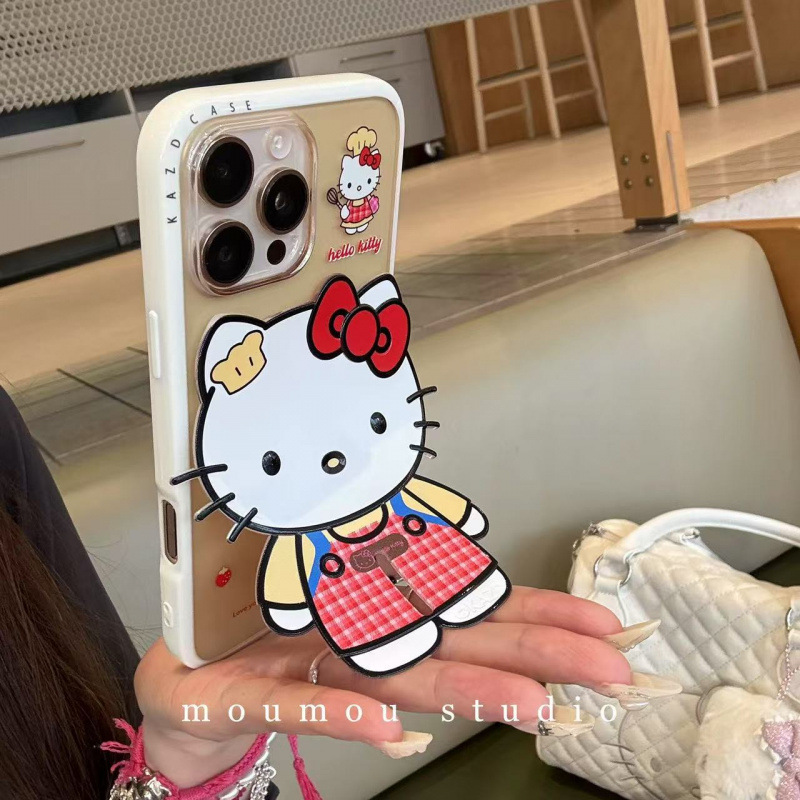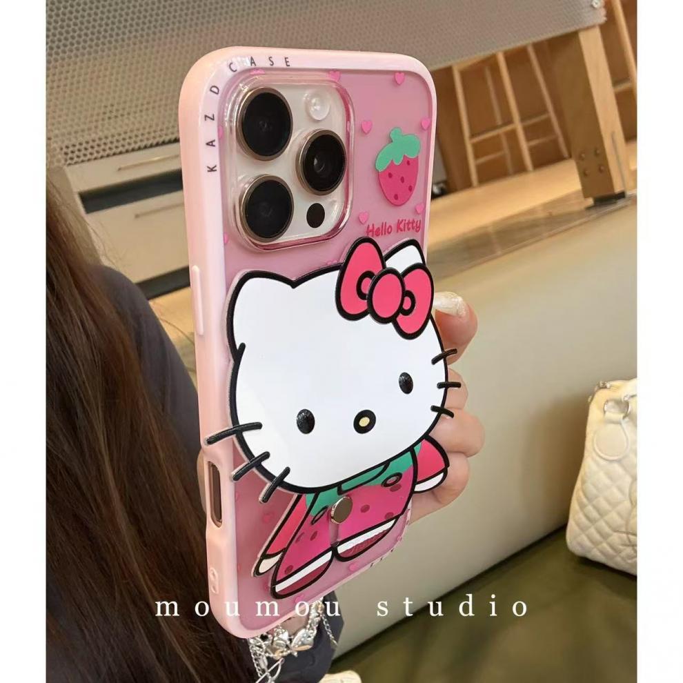 IPhone16promax Apple 15 휴대 전화 케이스 14 새로운 13 여성을위한 귀여운 3 차원 고양이 손목 스트랩 브래킷