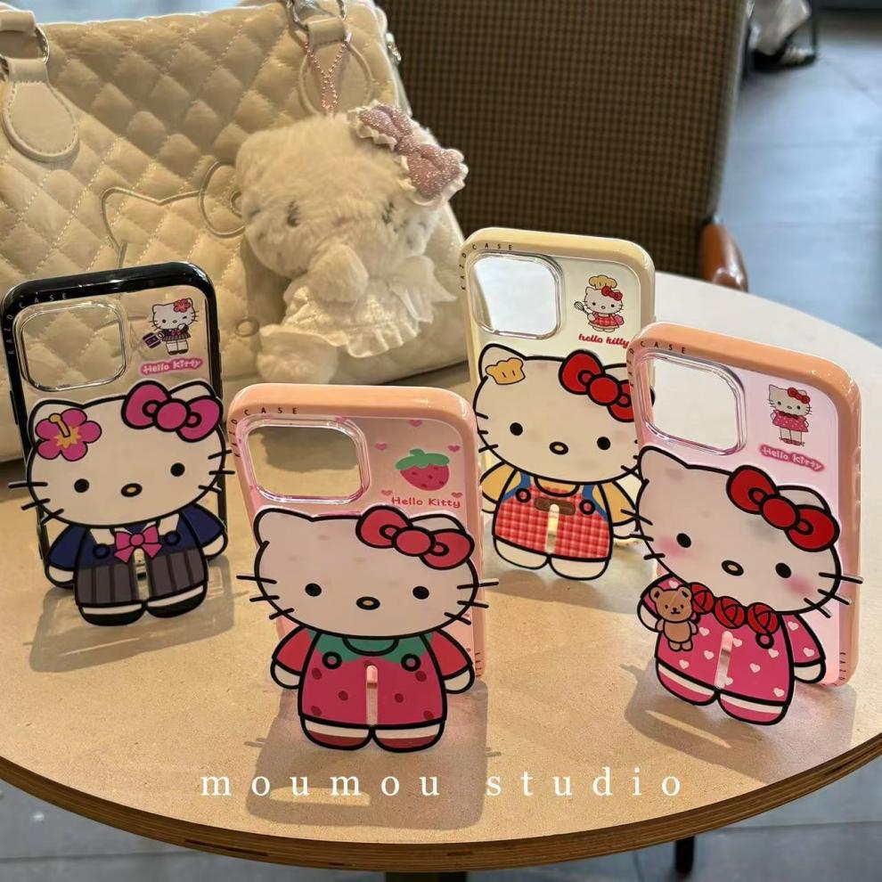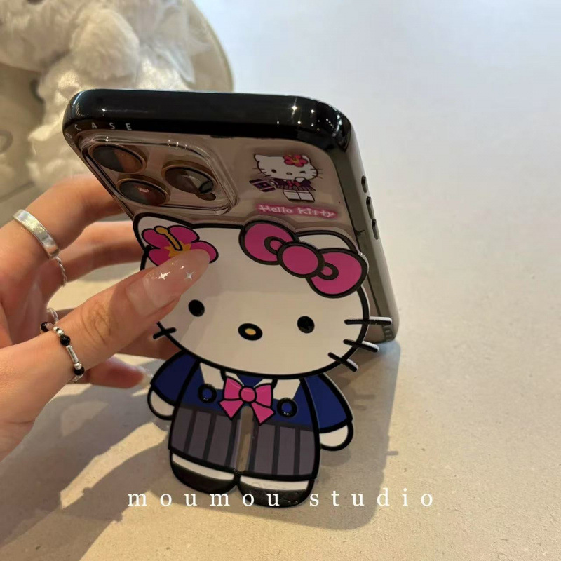 IPhone16promax Apple 15 휴대 전화 케이스 14 새로운 13 여성을위한 귀여운 3 차원 고양이 손목 스트랩 브래킷스토어 가기
