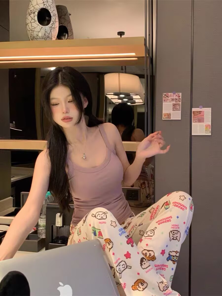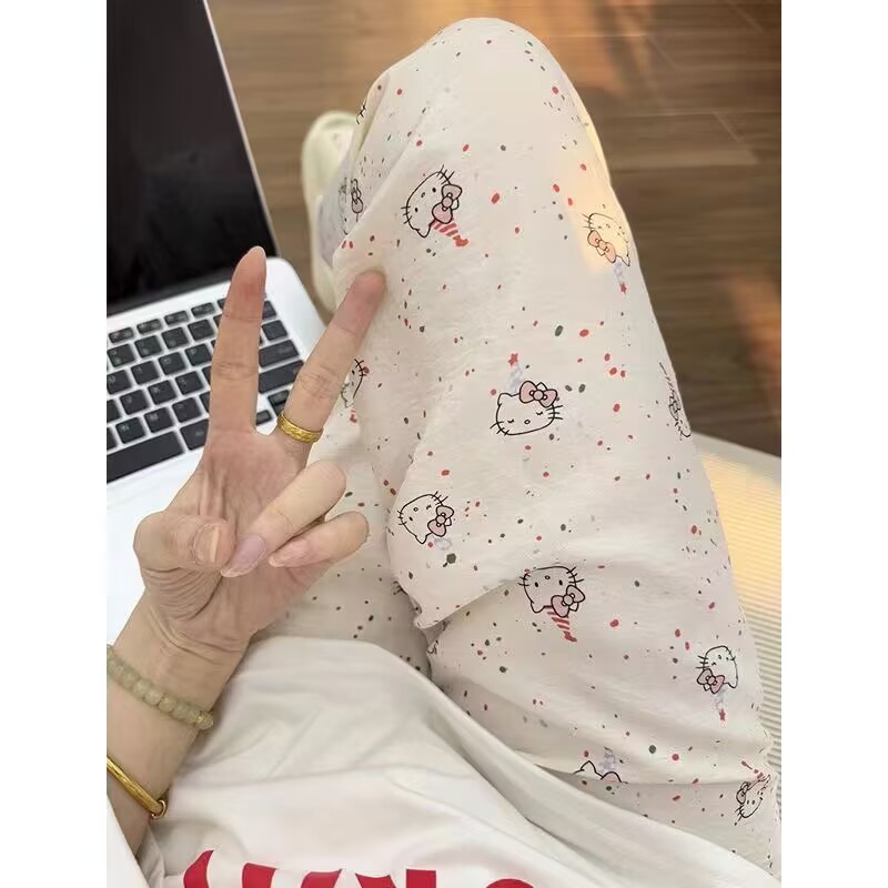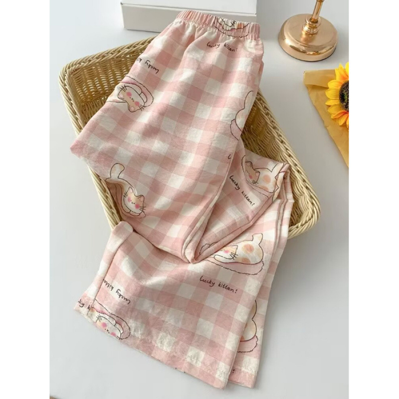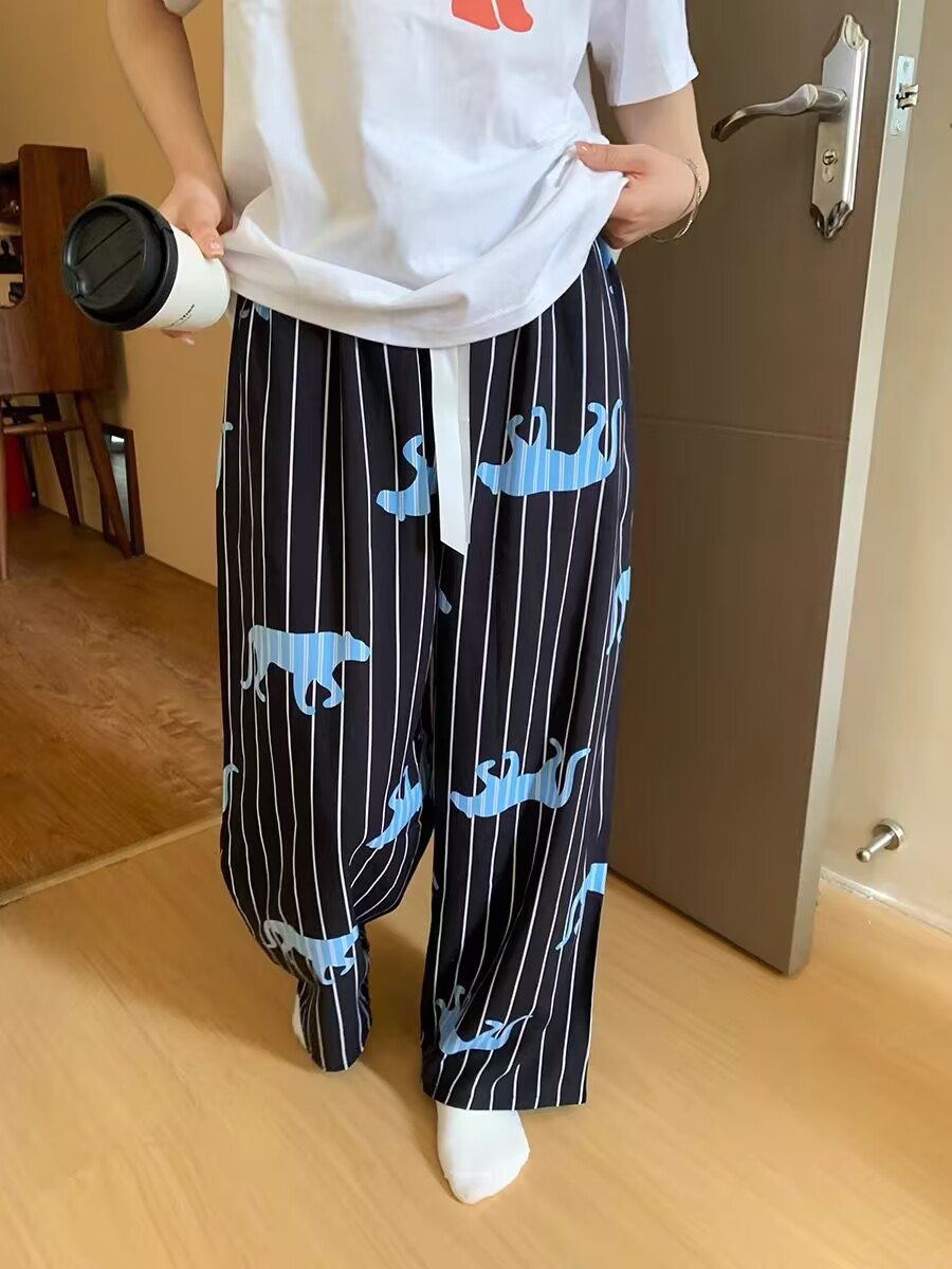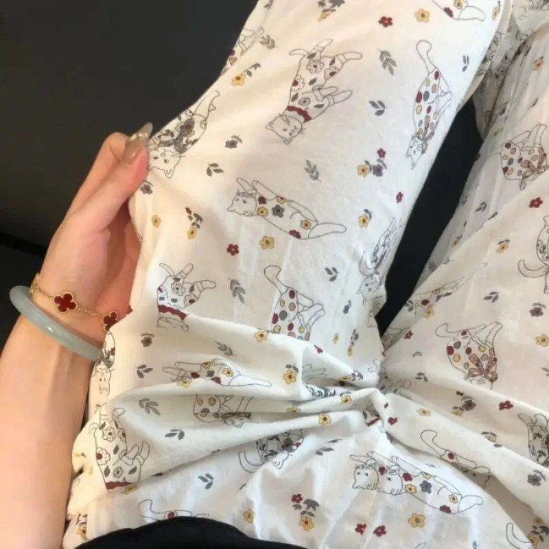 여성용 잠옷, 긴 바지, 여름 루즈한 새로운 스타일의 워킹 팬츠, 홈 파자마, 야외에서 착용 가능, 클라우드 코튼스토어 가기