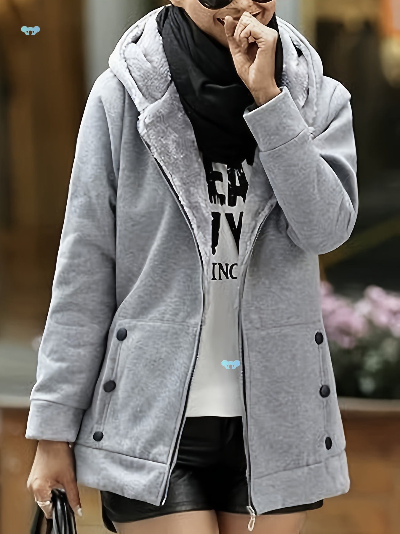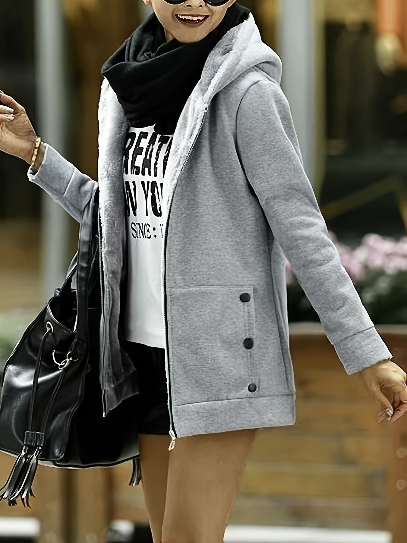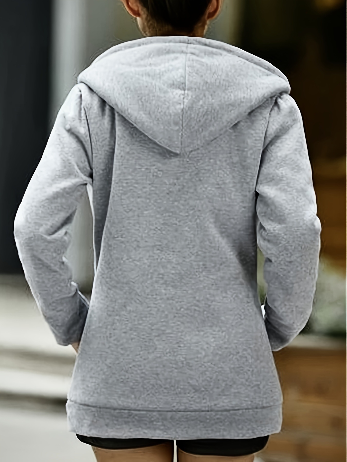 아늑한 1pc 여성용 솔리드 컬러 긴 소매 집업 스웨트 셔츠,