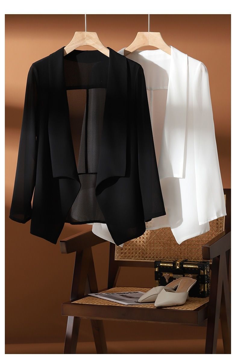 여름 신작 여성용 긴팔 얇은 쉬폰 코트, 다용도 루즈핏, 서스펜더 아우터 에어컨 가디건스토어 가기