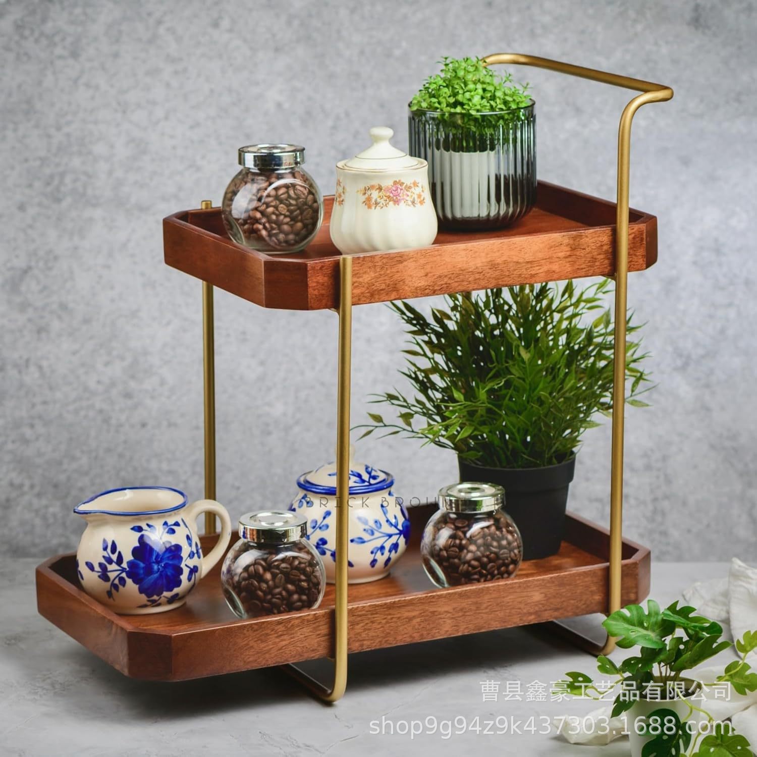 가정용 고급 수제 고급 주방 수납 선반 나무 조미료 선반 더블 레이어 주방 작업대