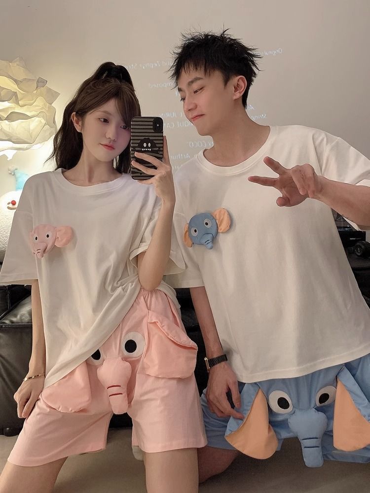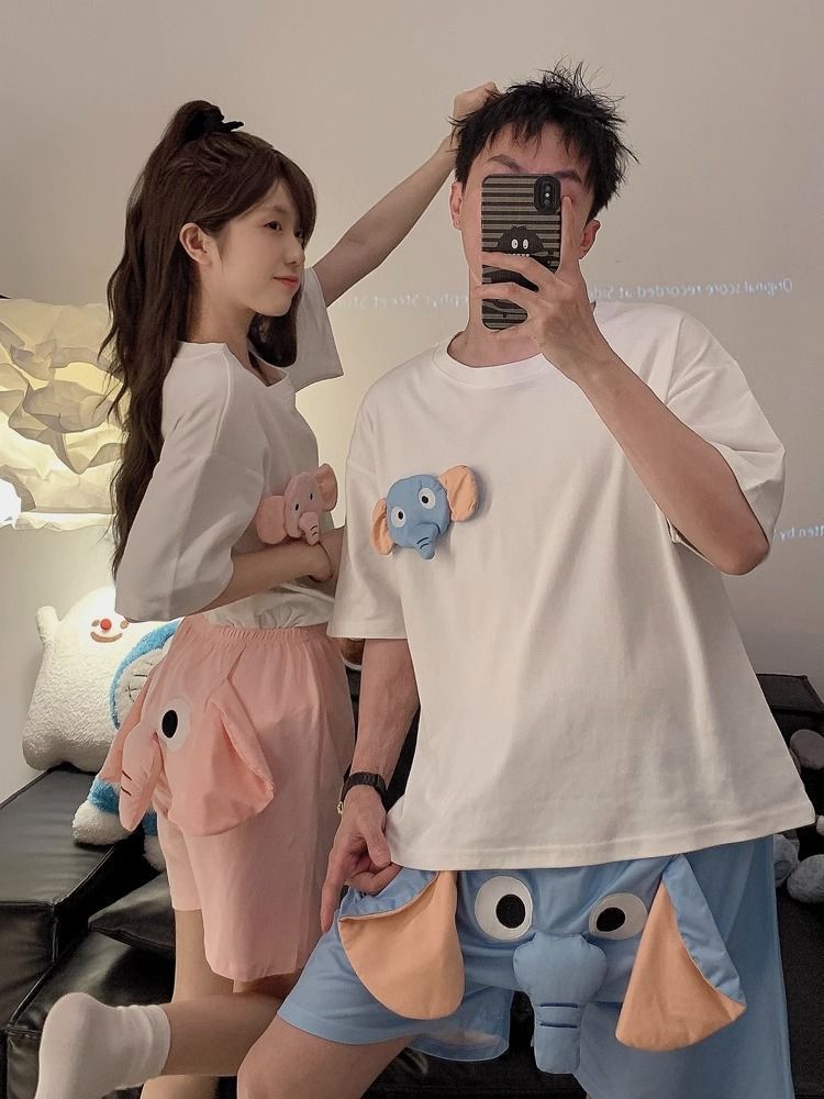 삐걱 거리는 코끼리 반바지 잠자는 바지 남자 여름 귀여운 웃긴 느슨한 잠옷 홈 옷 세트 캐주얼 바지