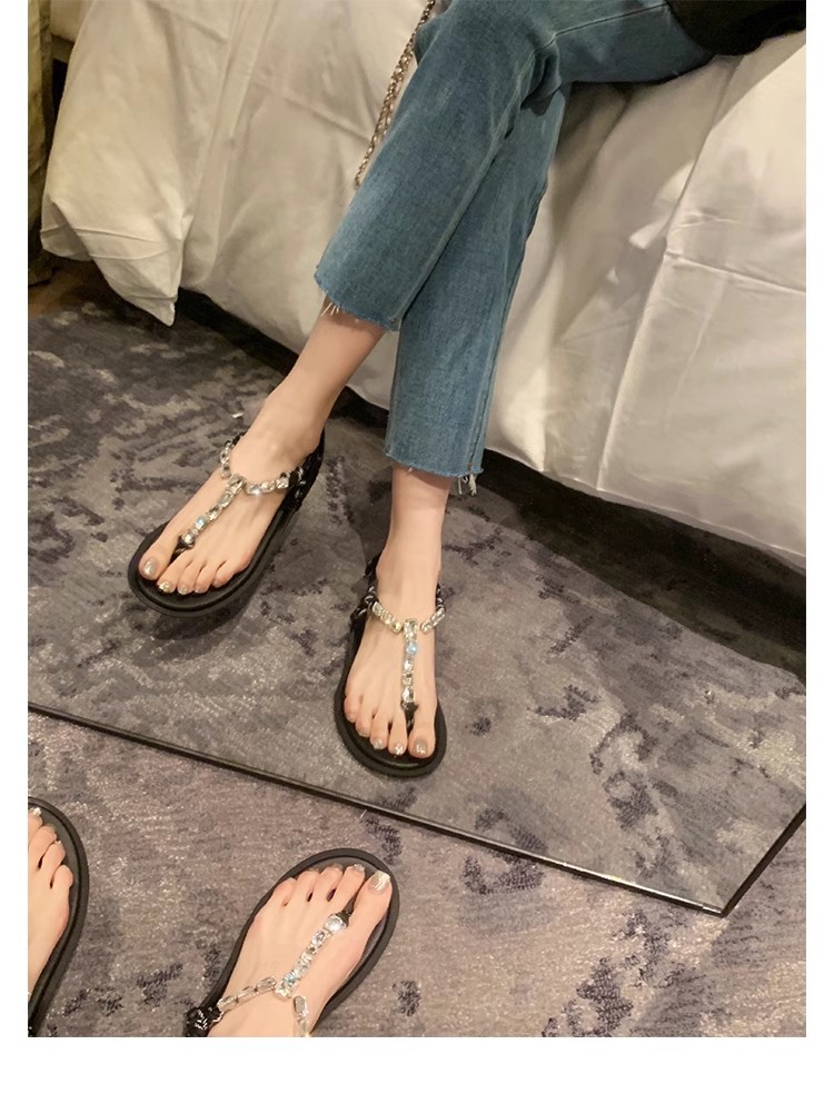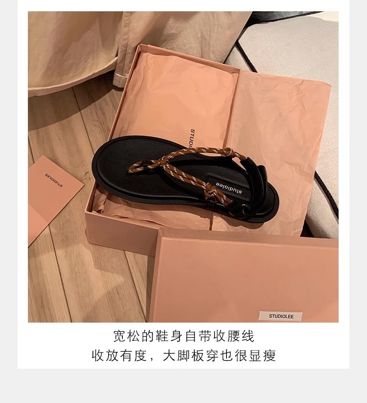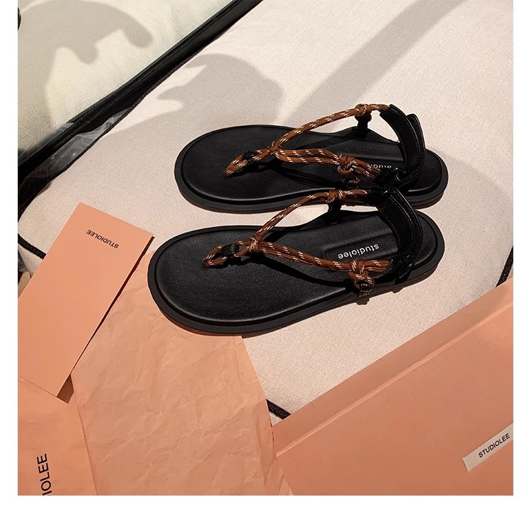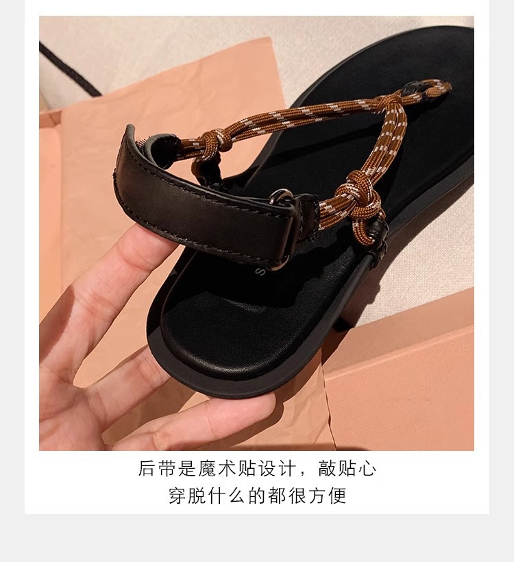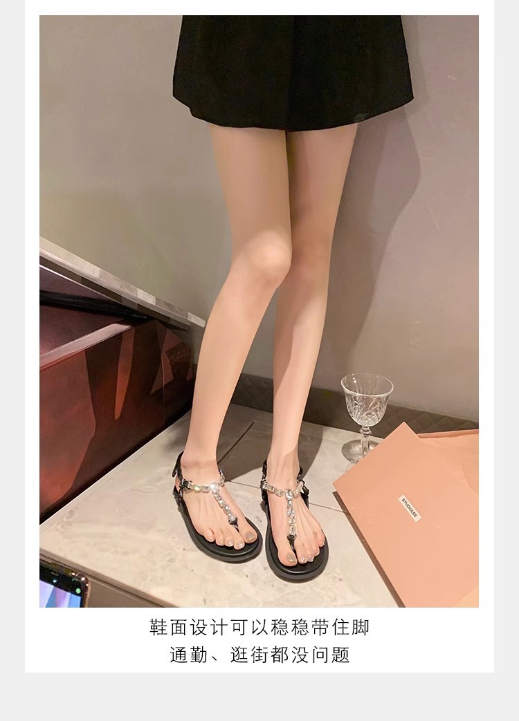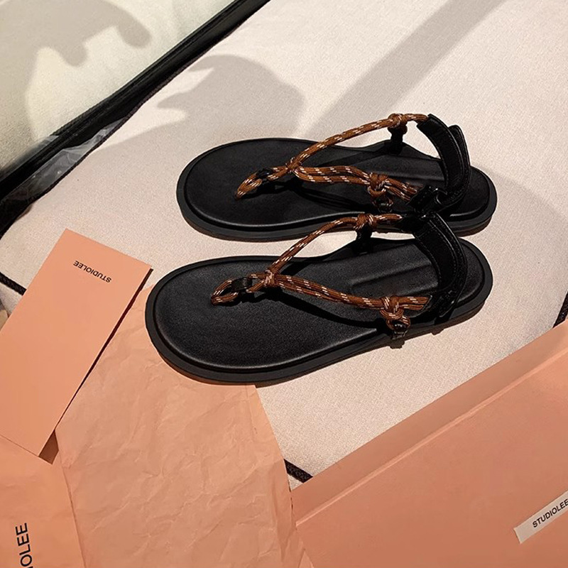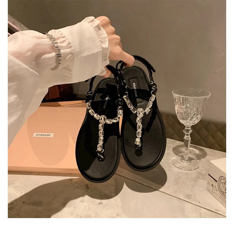 포도 엄마 2 층 가죽 라인 스톤 로마 스타일 2cm 플랫 매듭 올매치 클립 토 플립 샌들 여성용 여름스토어 가기