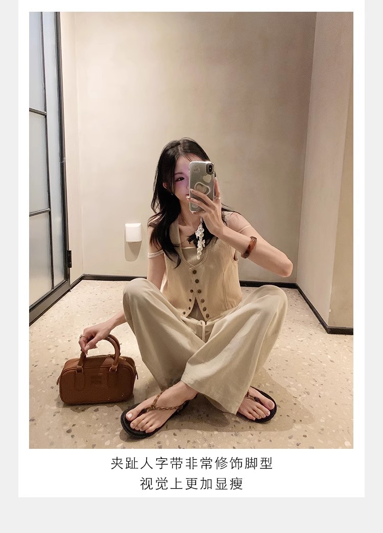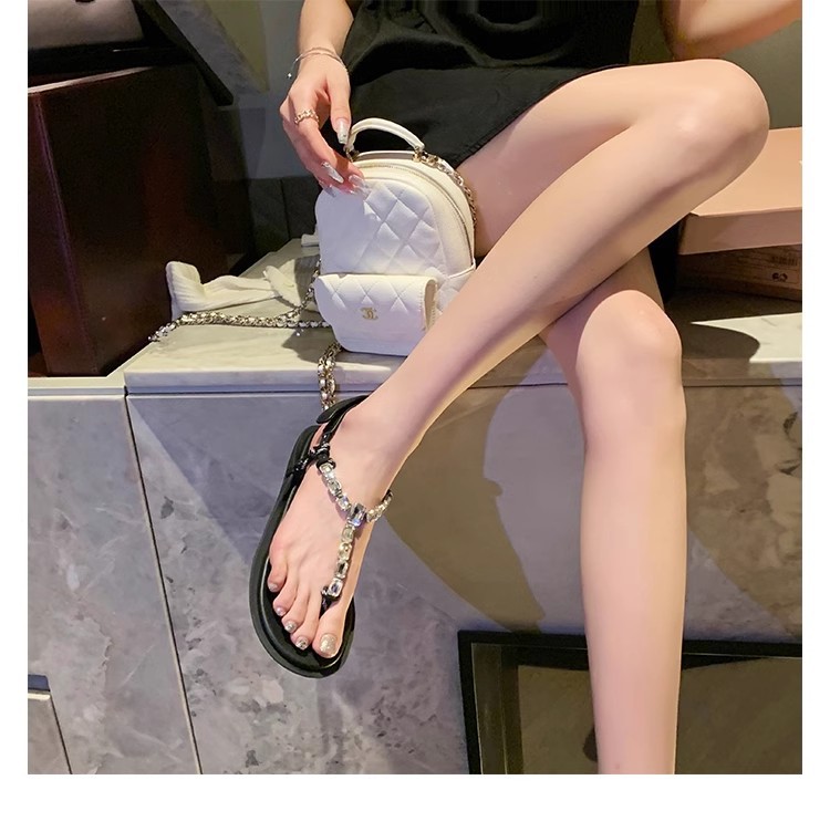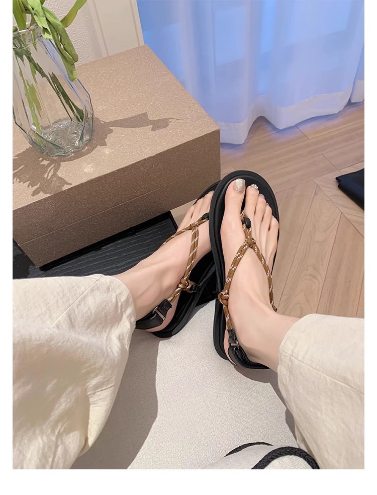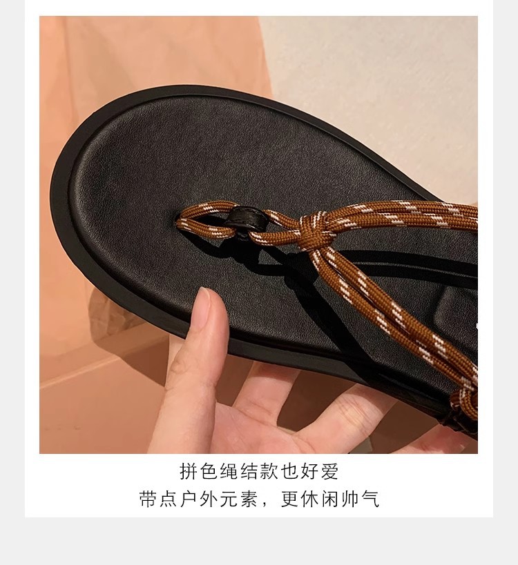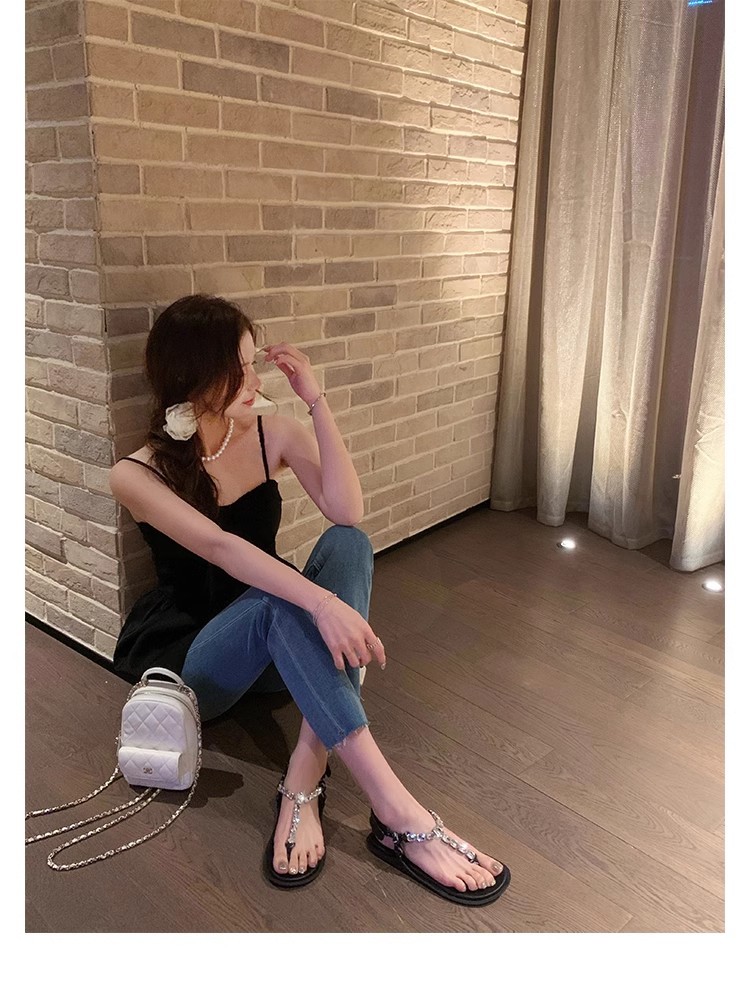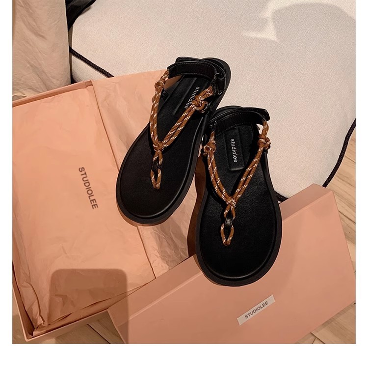 포도 엄마 2 층 가죽 라인 스톤 로마 스타일 2cm 플랫 매듭 올매치 클립 토 플립 샌들 여성용 여름스토어 가기
