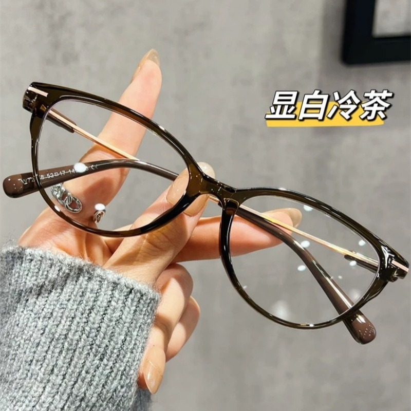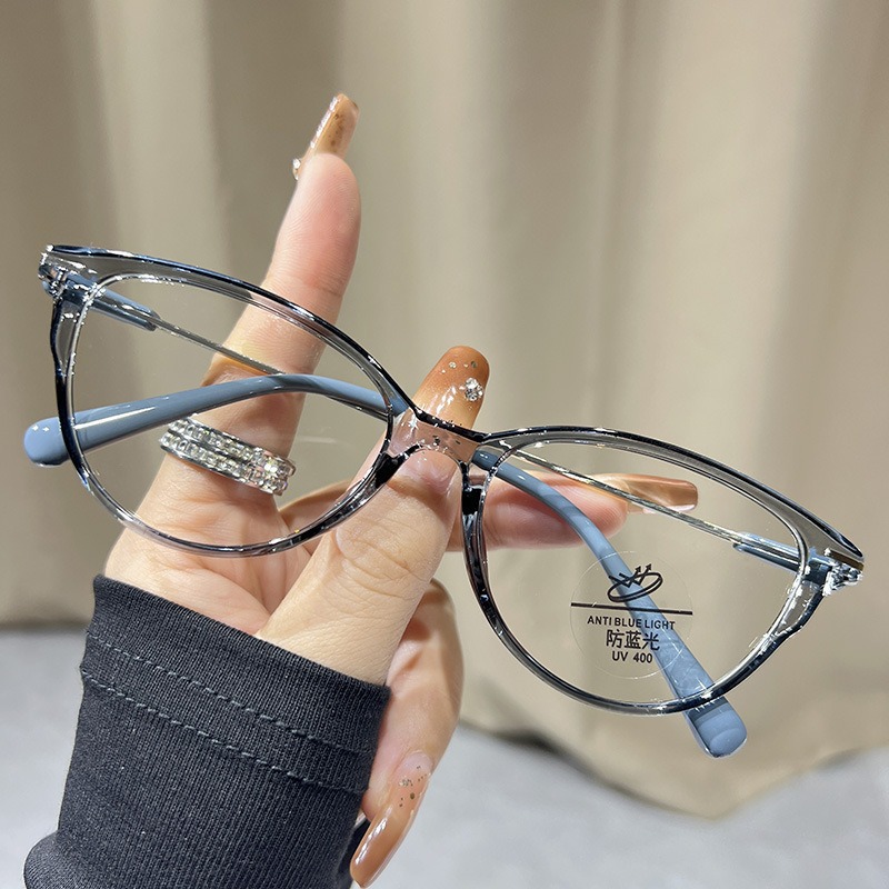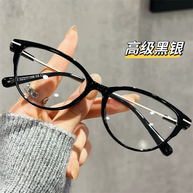 고급 감각의 안티 블루 라이트 고양이 눈 평면 안경 새로운 스타일의 작은 인터넷 연예인 성격 여성용 미국 근시 안경 프레임