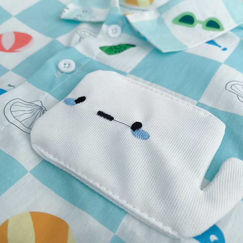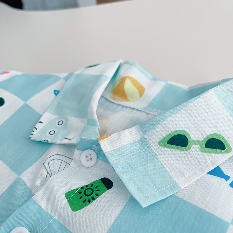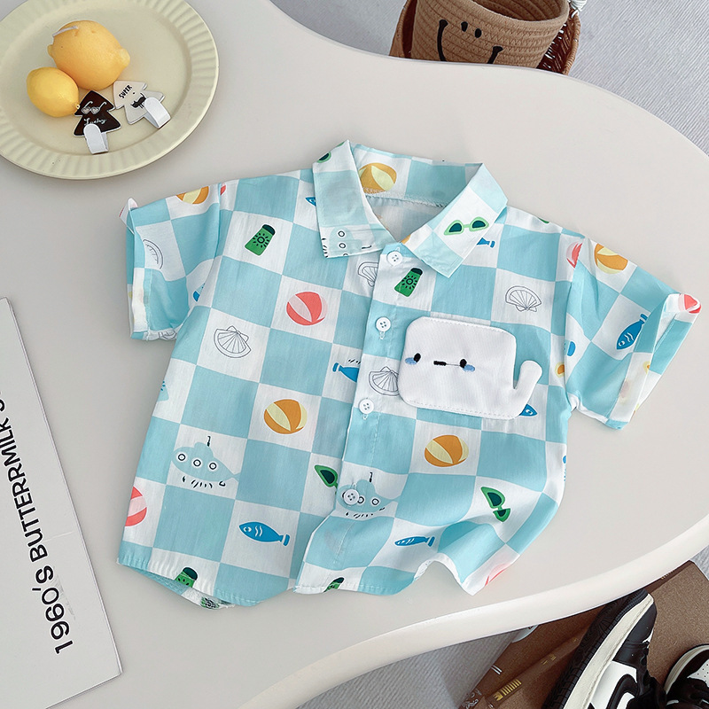 어린이 착용 25 여름 아기 소년의 인쇄 된 고래 셔츠 단색 청바지 투피스 세트 소년의 반바지 투피스 세트스토어 가기