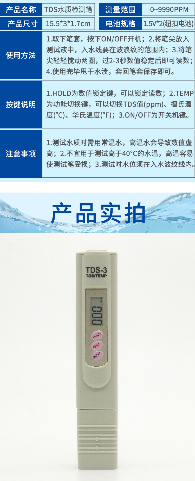 수질 테스트 펜 수질 전기 분해기 tds 수질 테스트 펜 정수기 식수 가정용 테스트 도구