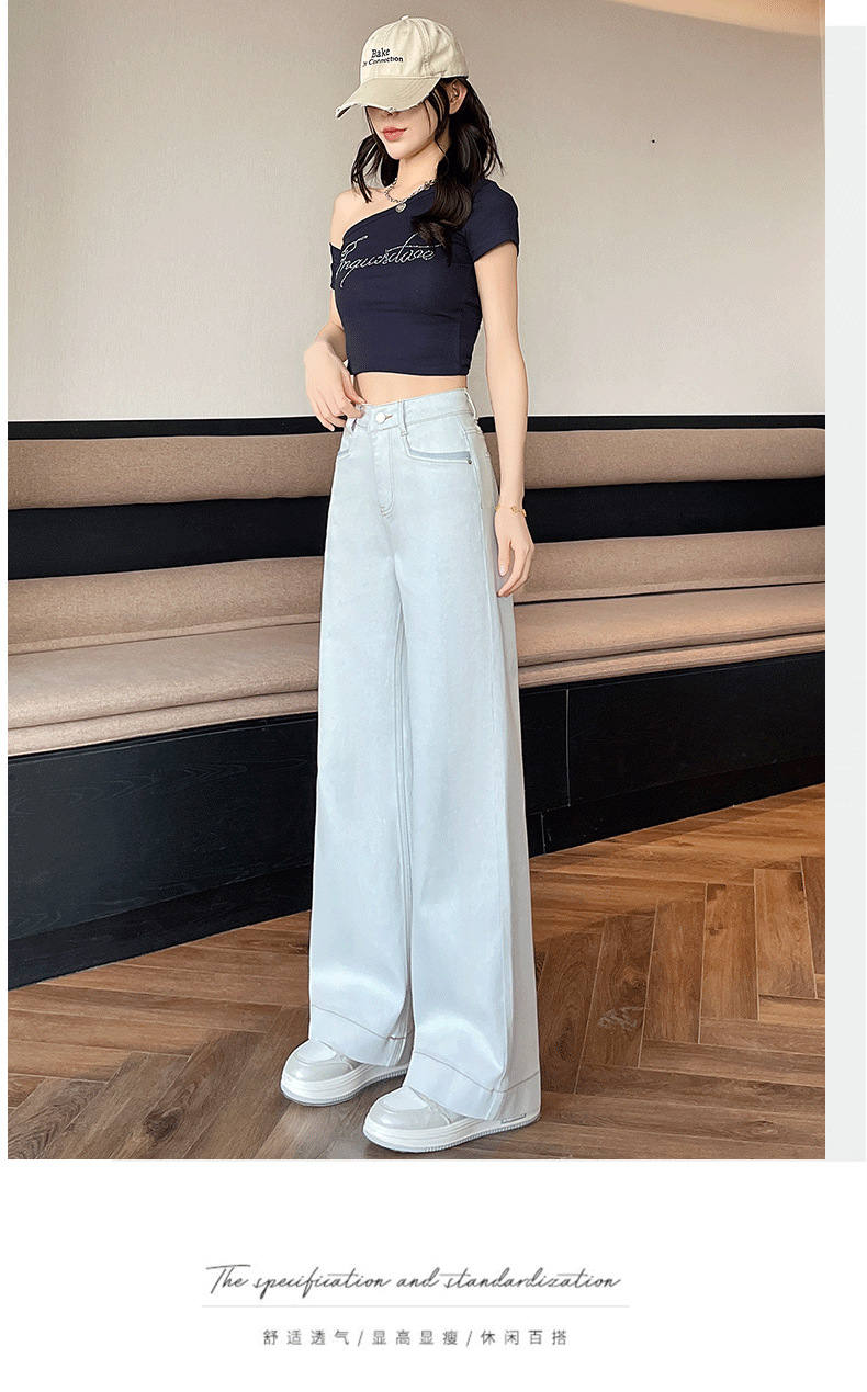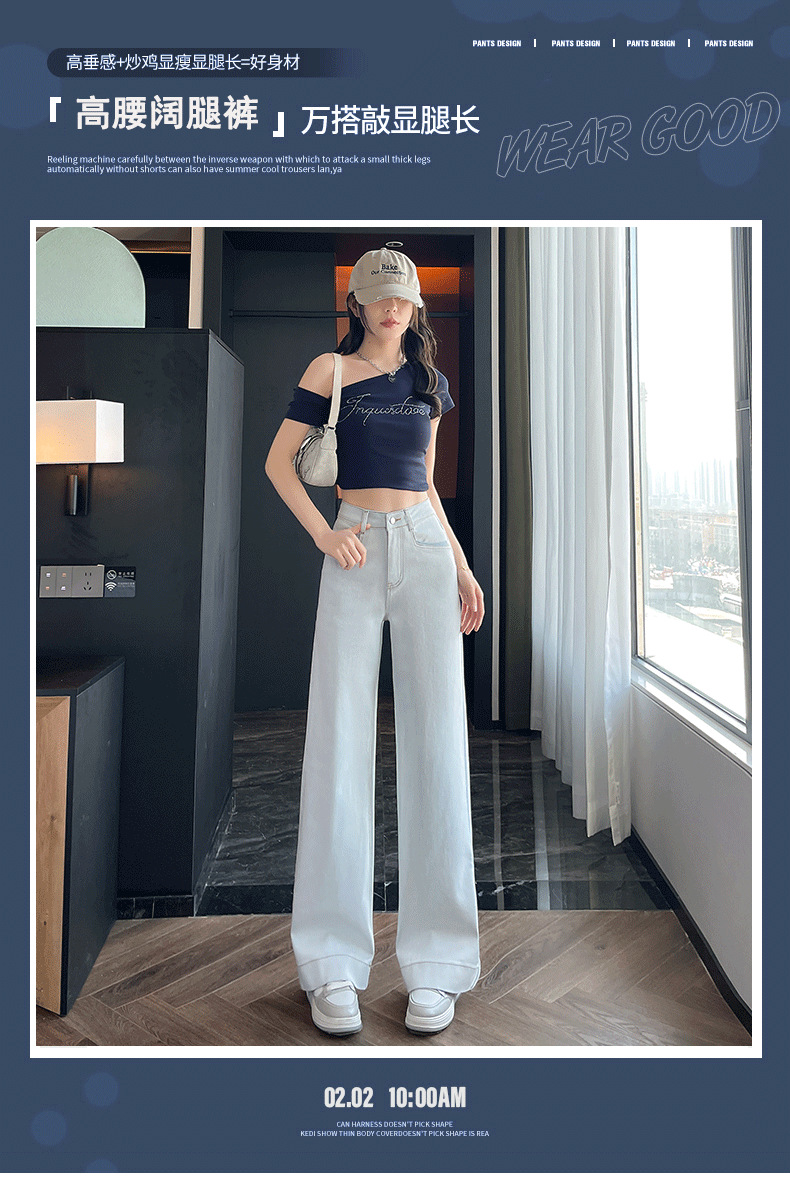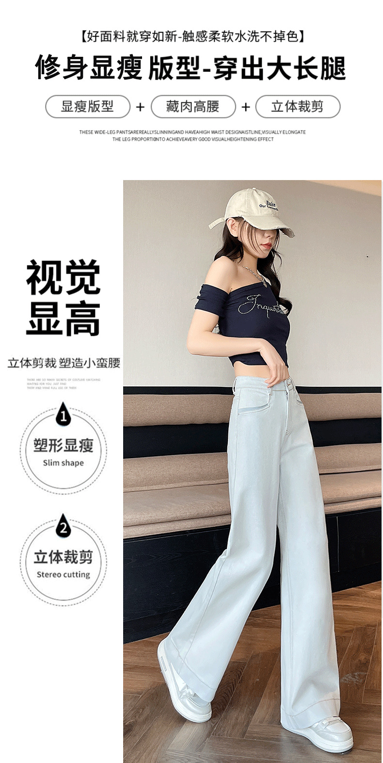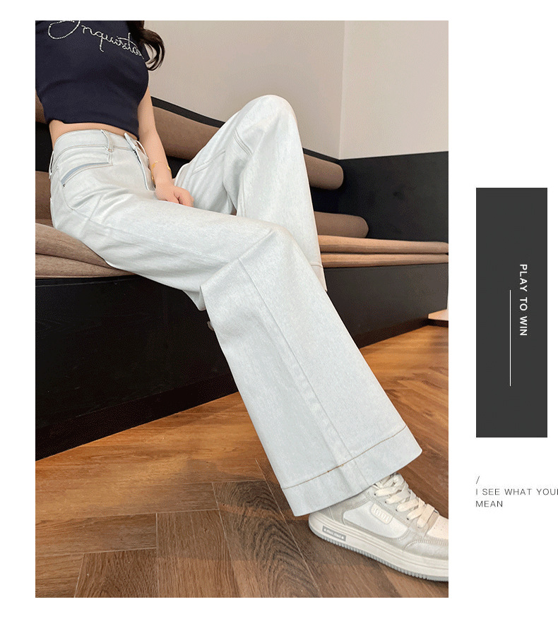 15 02 2 월 부드러운 회색 데님 스트레이트 다리 바지 여자 2025 여름 새로운 높은 허리 작은 다리 연기 튜브 바지스토어 가기