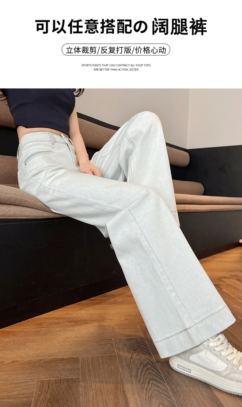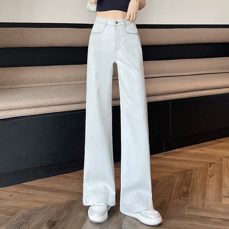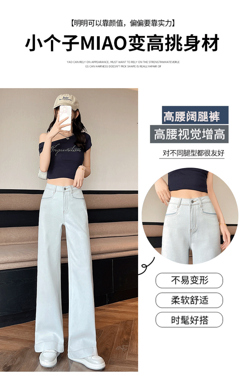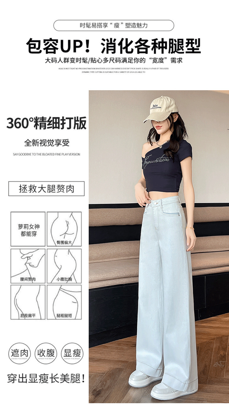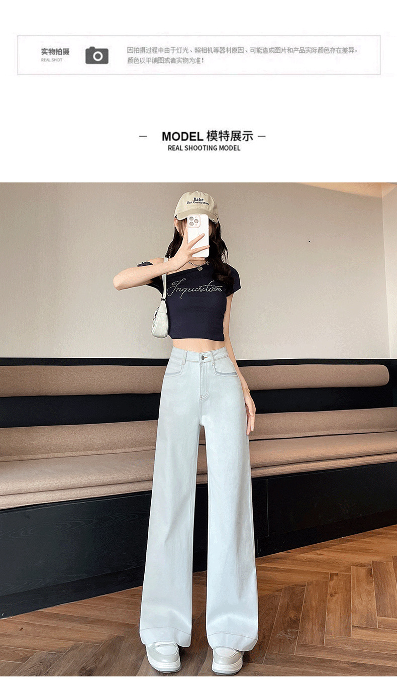15 02 2 월 부드러운 회색 데님 스트레이트 다리 바지 여자 2025 여름 새로운 높은 허리 작은 다리 연기 튜브 바지스토어 가기