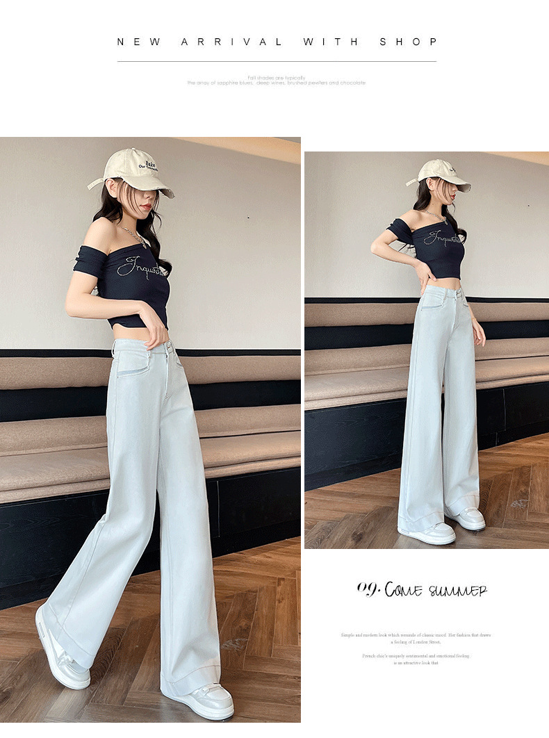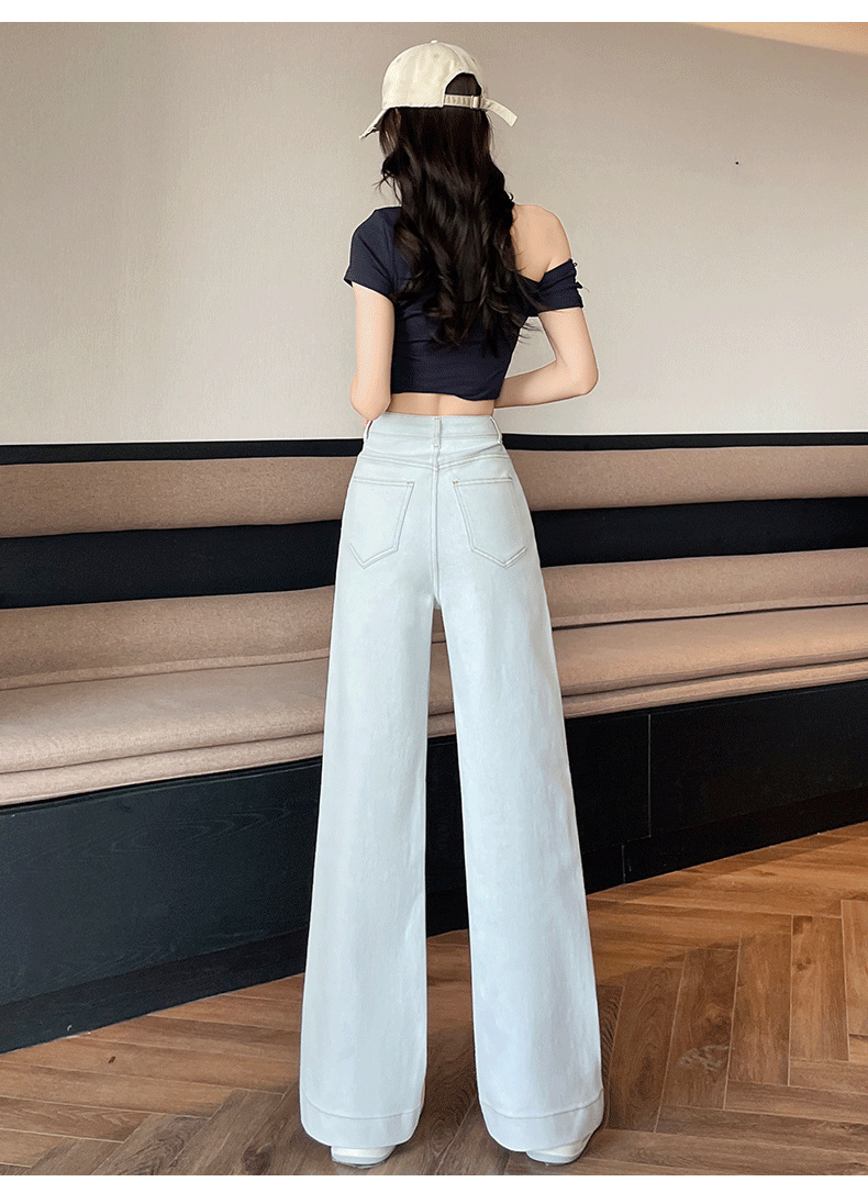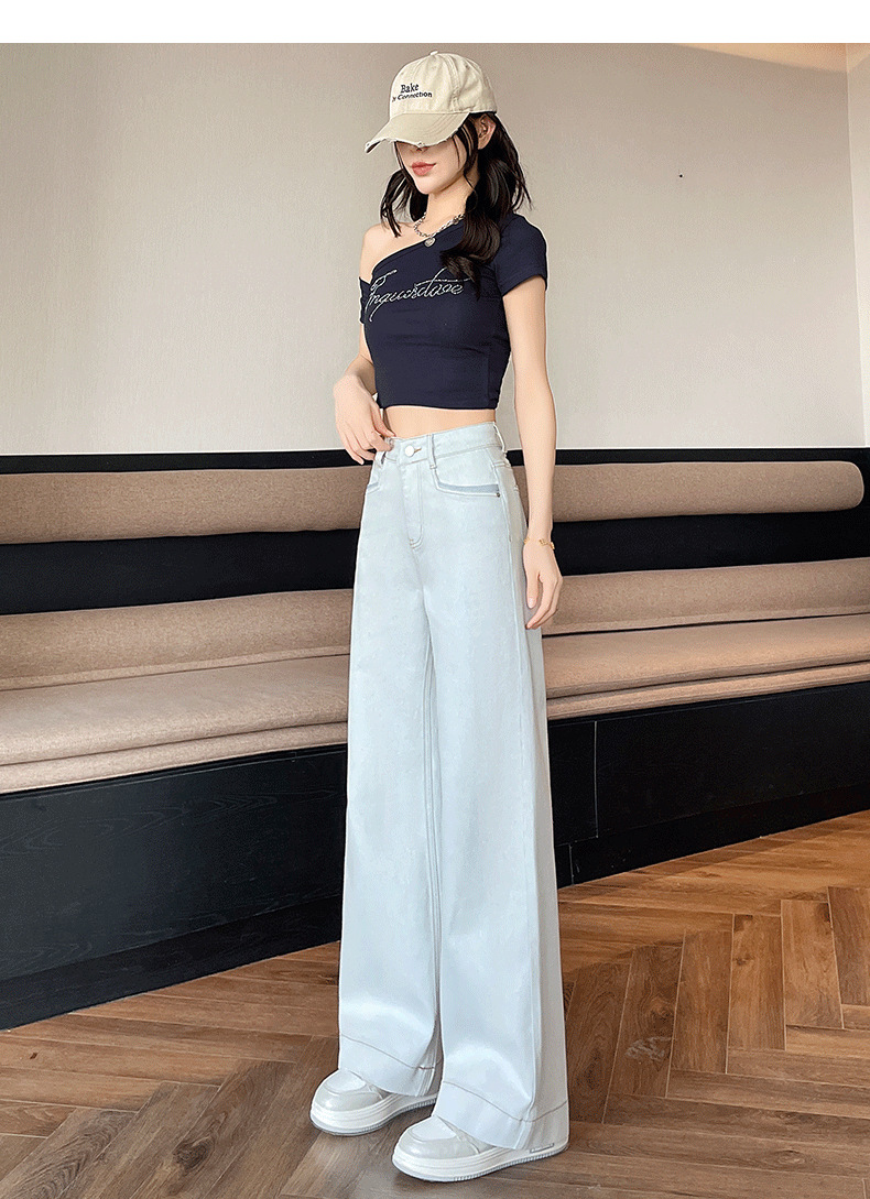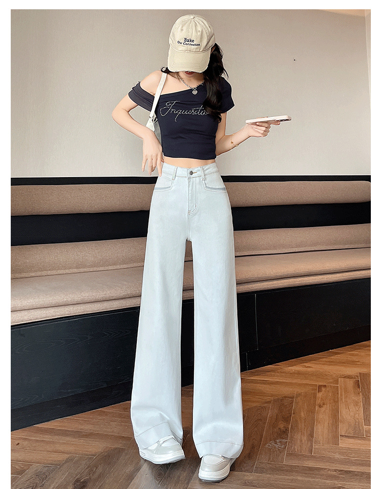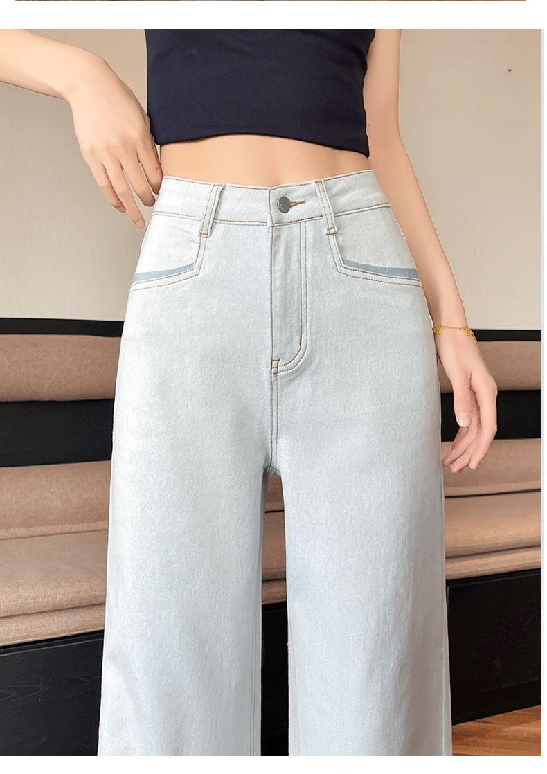 15 02 2 월 부드러운 회색 데님 스트레이트 다리 바지 여자 2025 여름 새로운 높은 허리 작은 다리 연기 튜브 바지스토어 가기