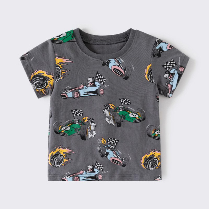 소년 순면 반팔 티셔츠 2025 여름 신작 아동 의류 만화 프린트 트렌디 베이비 탑스토어 가기