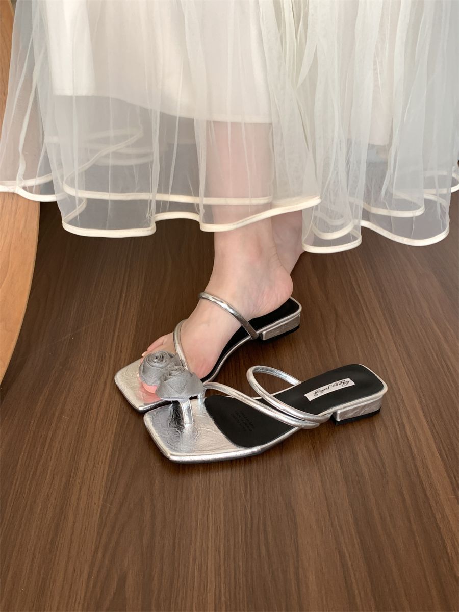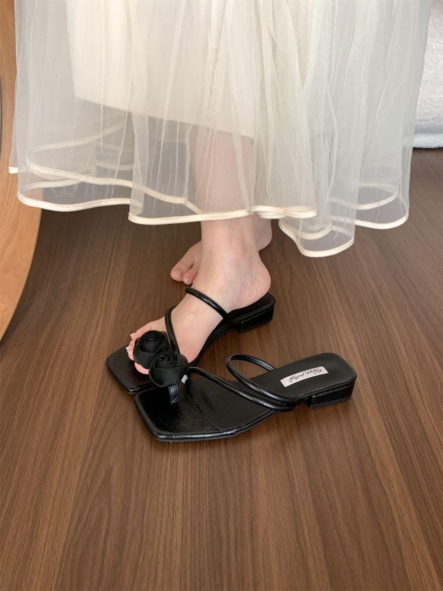 프랑스 복고풍 슬리퍼, 요정 신발, 여성용 여름 슬리퍼, 새로운 중국 스타일의 두꺼운 굽 슬리퍼