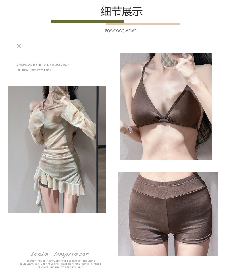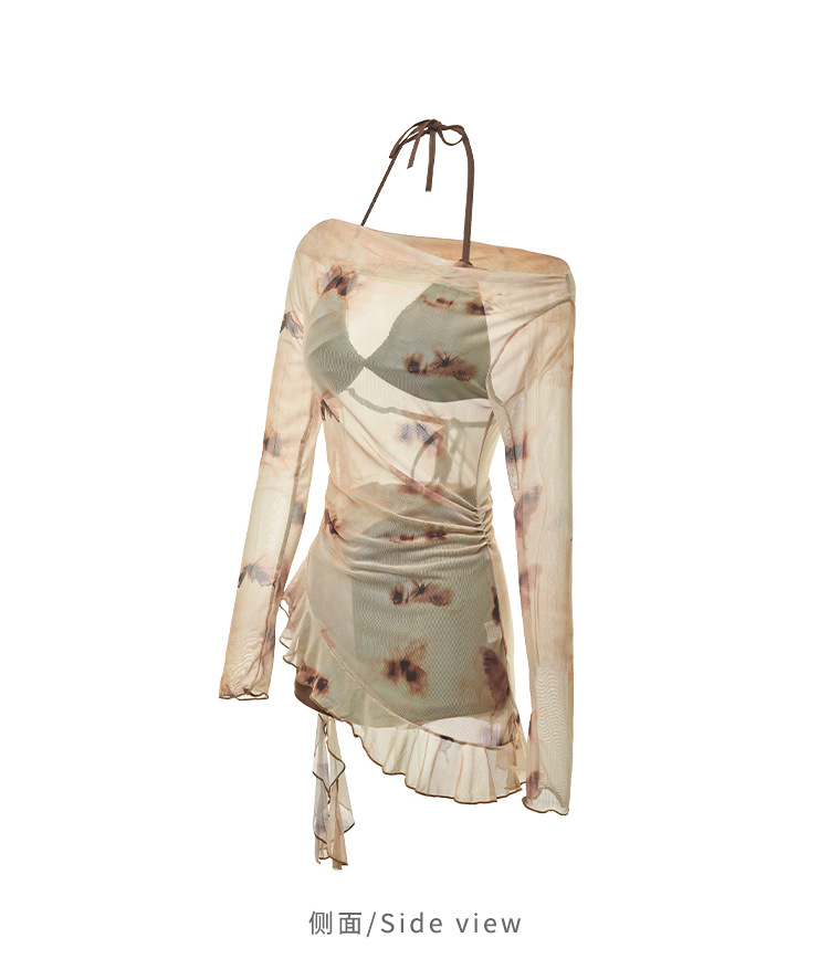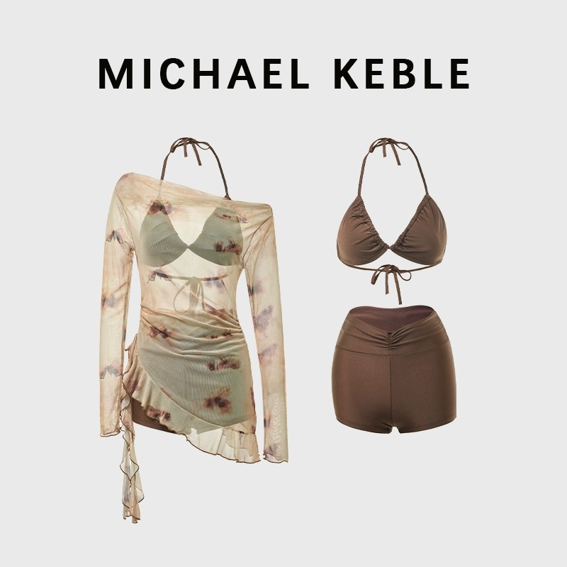 2025 새로운 도착 수영복 여성용 스플릿 3 피스 세트 긴팔 슬리밍 시사이드 블라우스 비키니 휴가 수영복스토어 가기