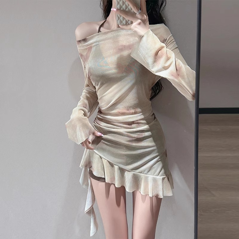 2025 새로운 도착 수영복 여성용 스플릿 3 피스 세트 긴팔 슬리밍 시사이드 블라우스 비키니 휴가 수영복