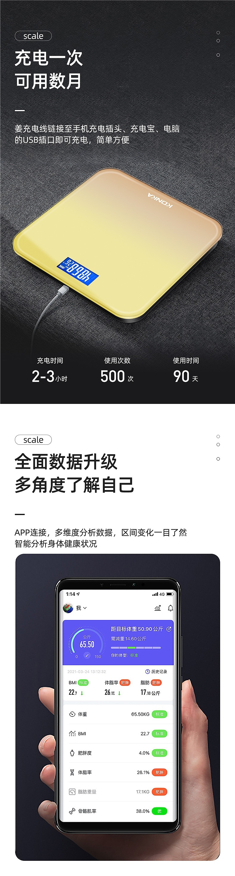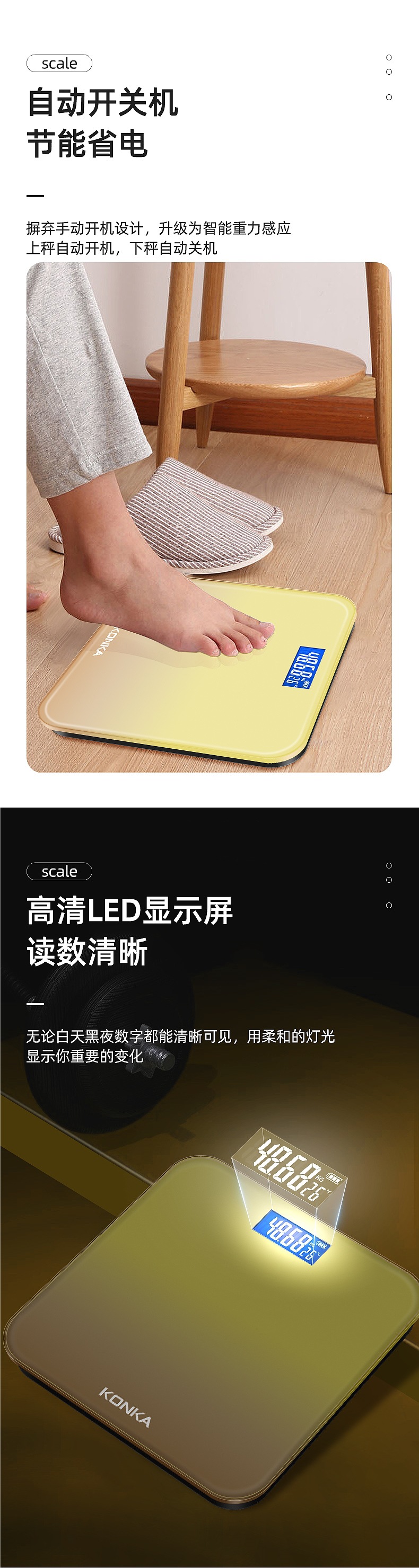 여자 기숙사의 높은 체지방 중량을 위한 Konka 전자 저울 가정용 소형 내구성 충전식 체중계