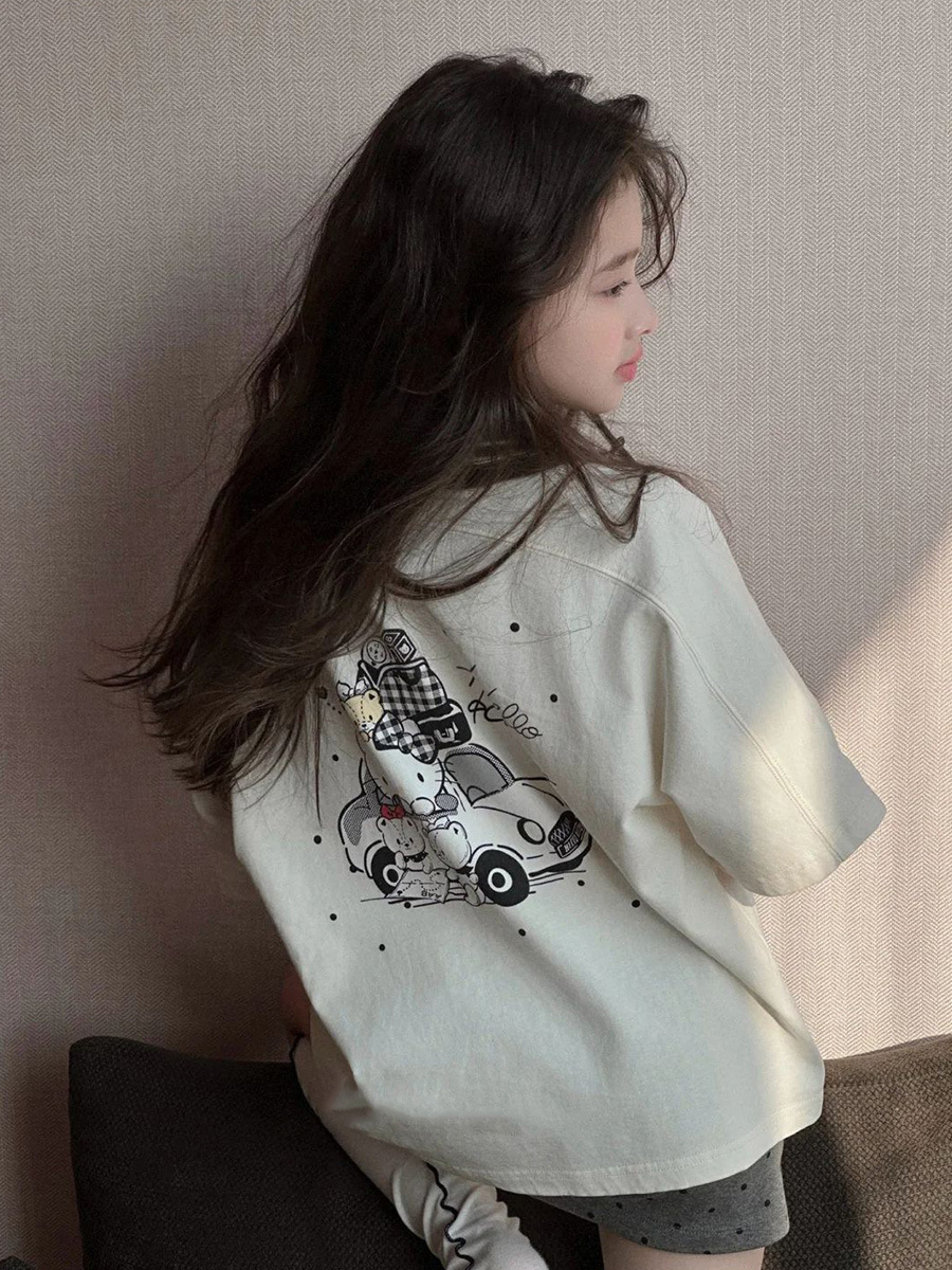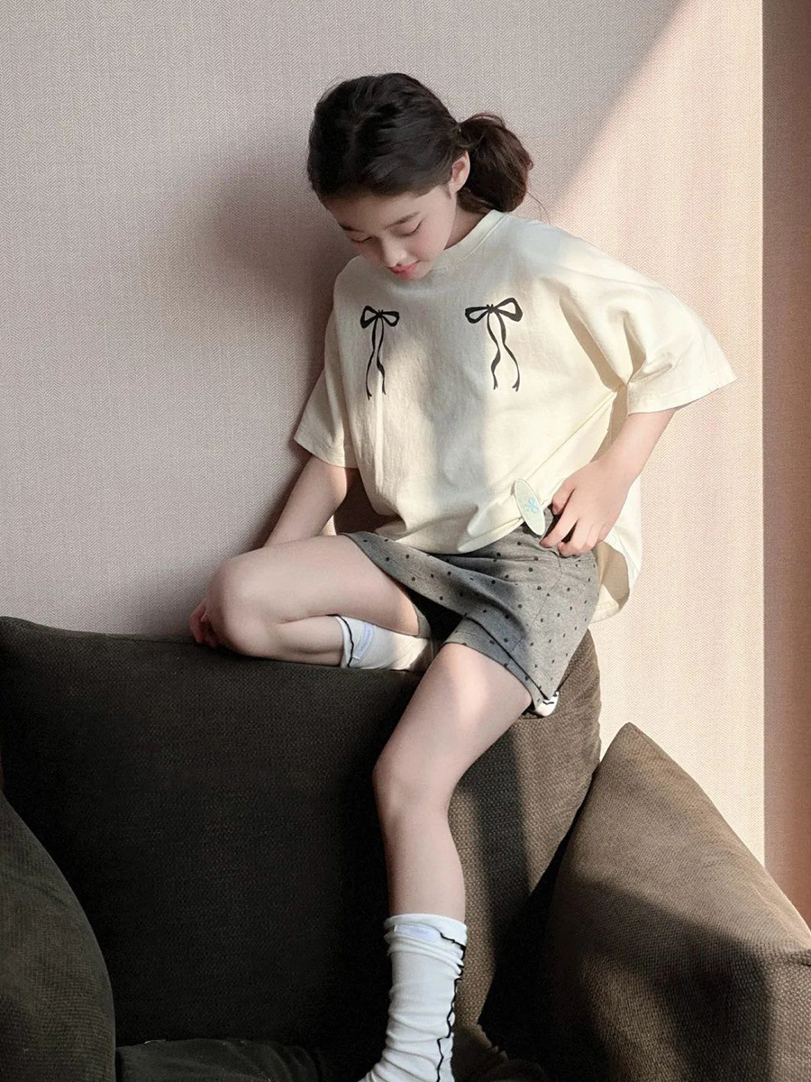 여자 세트 봄과 여름 2025 새로운 어린이 반팔 티셔츠 큰 어린이 바지 스커트 니치 한국 여자 투피스 세트 6스토어 가기