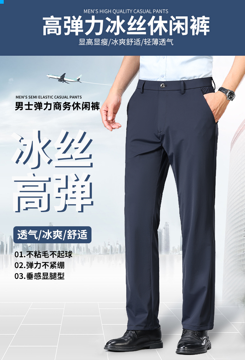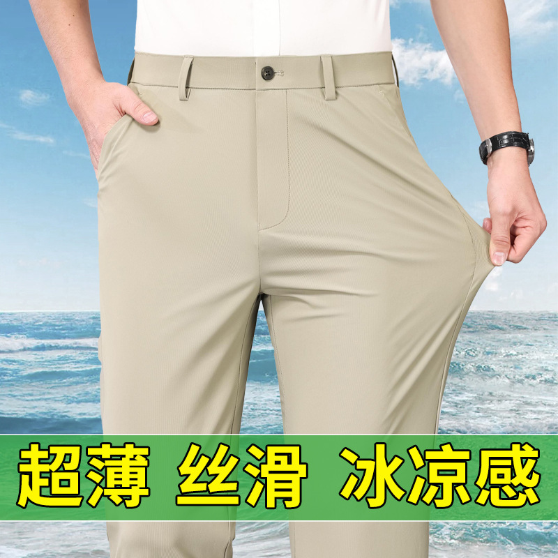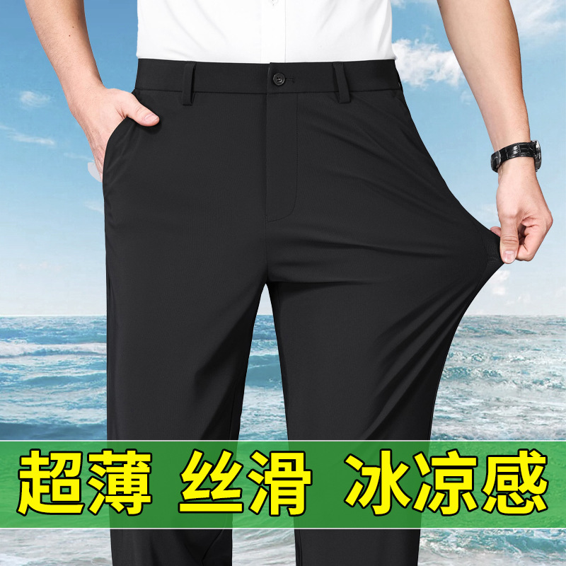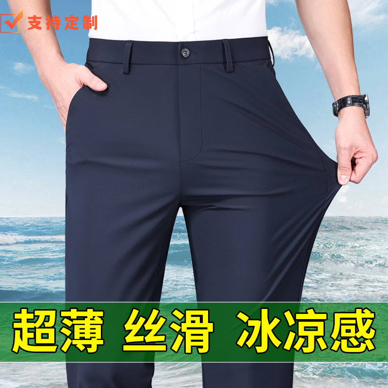 국경 간 도매 얼음 실크 남성 바지 여름 얇은 느슨한 스트레이트 남성 캐주얼 바지 하이 엔드 폴리 에스터 바지 비즈니스 바지