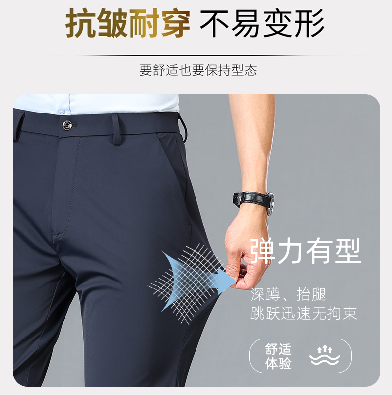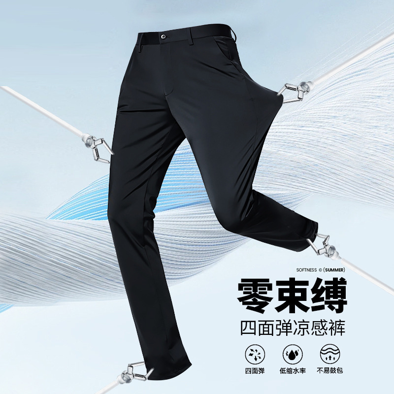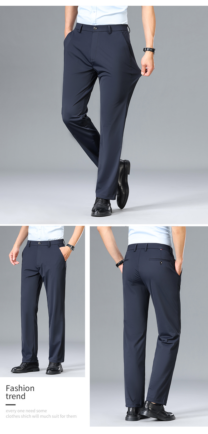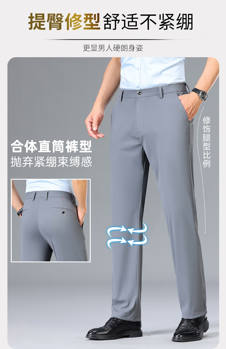 국경 간 도매 얼음 실크 남성 바지 여름 얇은 느슨한 스트레이트 남성 캐주얼 바지 하이 엔드 폴리 에스터 바지 비즈니스 바지