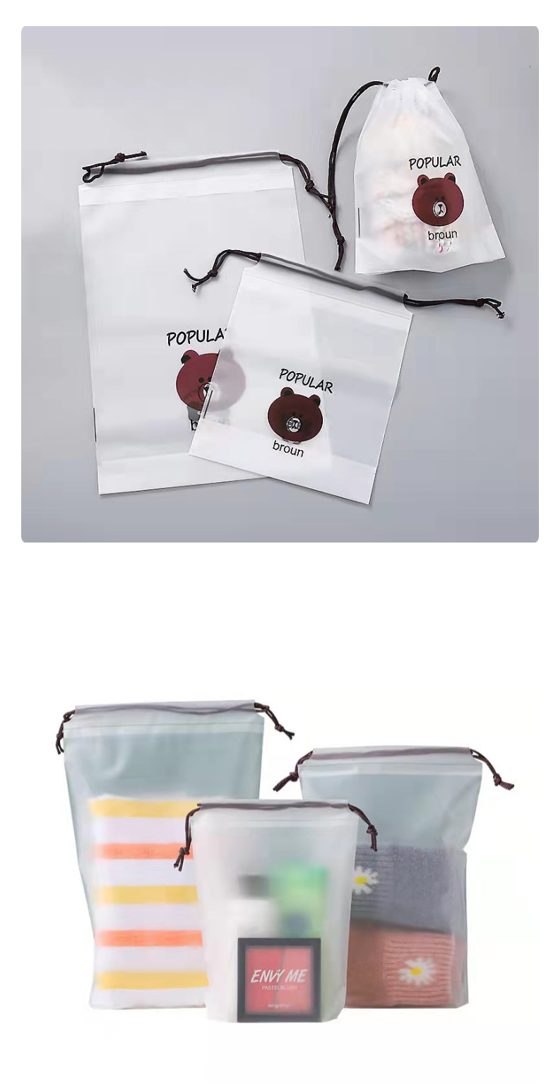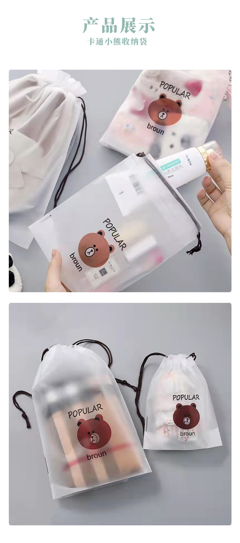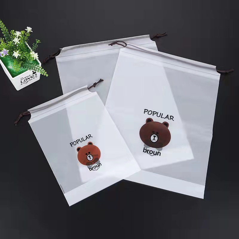 사용자 정의 곰 Drawstring 포켓 양말 수건 포장 가방 신발 보관 가방 투명 젖빛 Drawstring 가방
