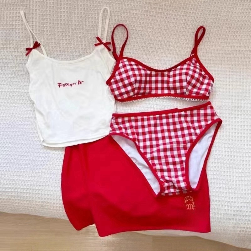 2025 새로운 스플릿 스커트 비키니 4 피스 수영복 여성용 긴팔 블라우스 휴가 용 수영복스토어 가기