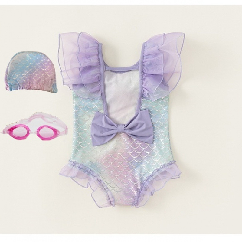 • 보라색 플라잉 슬리브 수영복 + 수영 고글 + 수영 모자