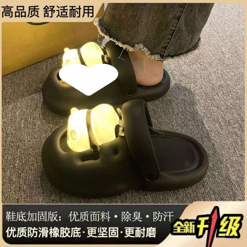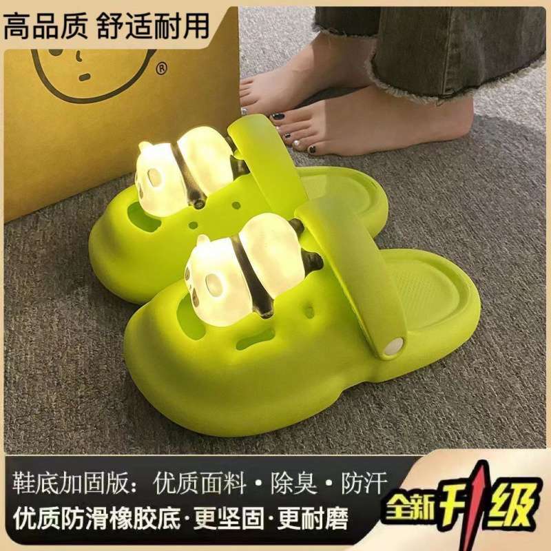 2025 새로운 팬더 라이트 홀 한국 스타일 여성 봄, 여름 미끄럼 방지 플랫폼 높이 증가 토우 스트랩 라이트 슬리퍼 여성용스토어 가기